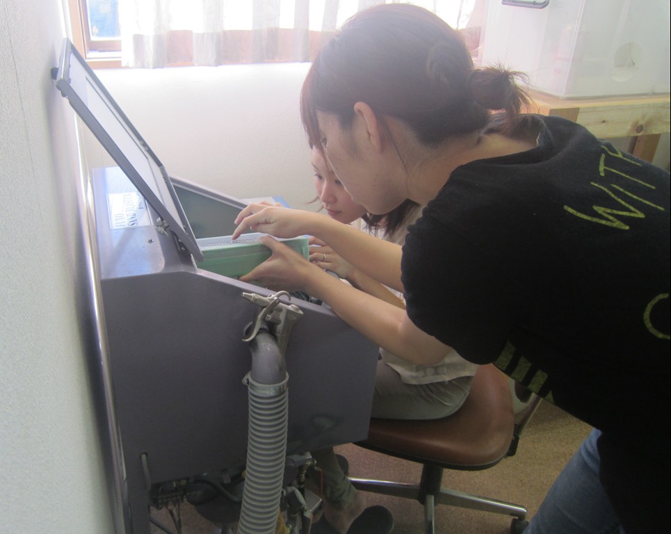 養生した状態のものと彫りあがった状態のものを見比べると違いがよくわかります。マスク作り色付などの作業は時間が掛かるので当社が作業をしますが、お客様にはとても良い思い出になった事だと思います。