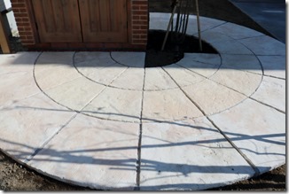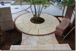 さらに進むと門柱と同じマッシュソイルで統一感を出したシンボルツリーのサークルも。