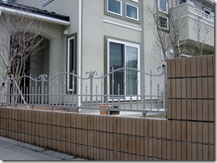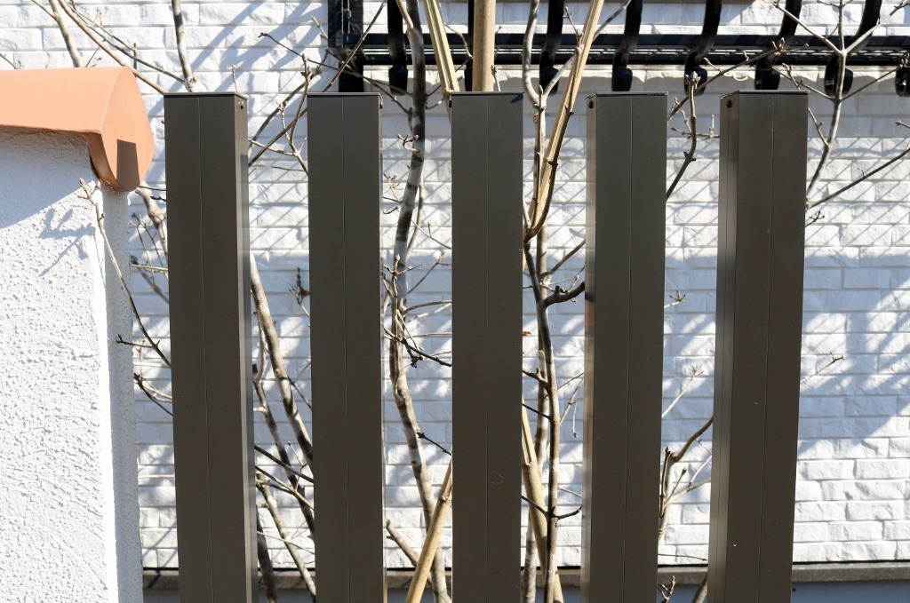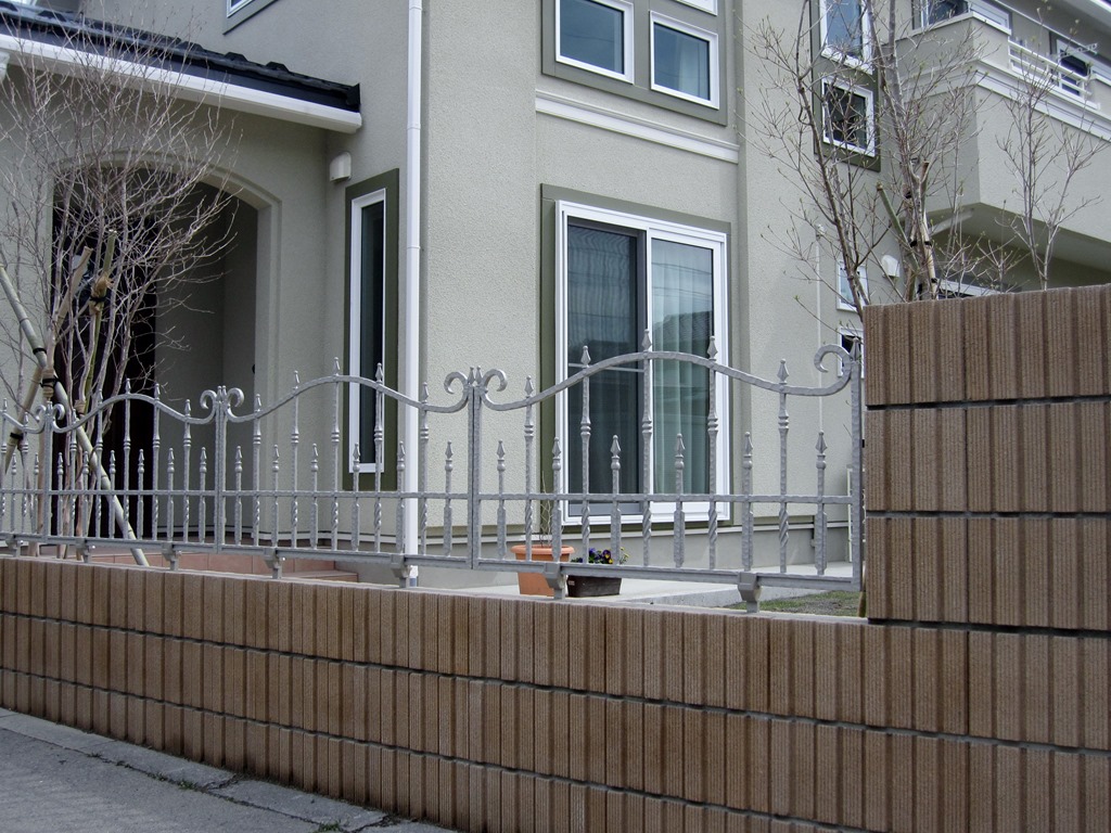 道路側の境界にはSBブロックを3段積み、その上にアルミ鋳物フェンスを取り付けています。