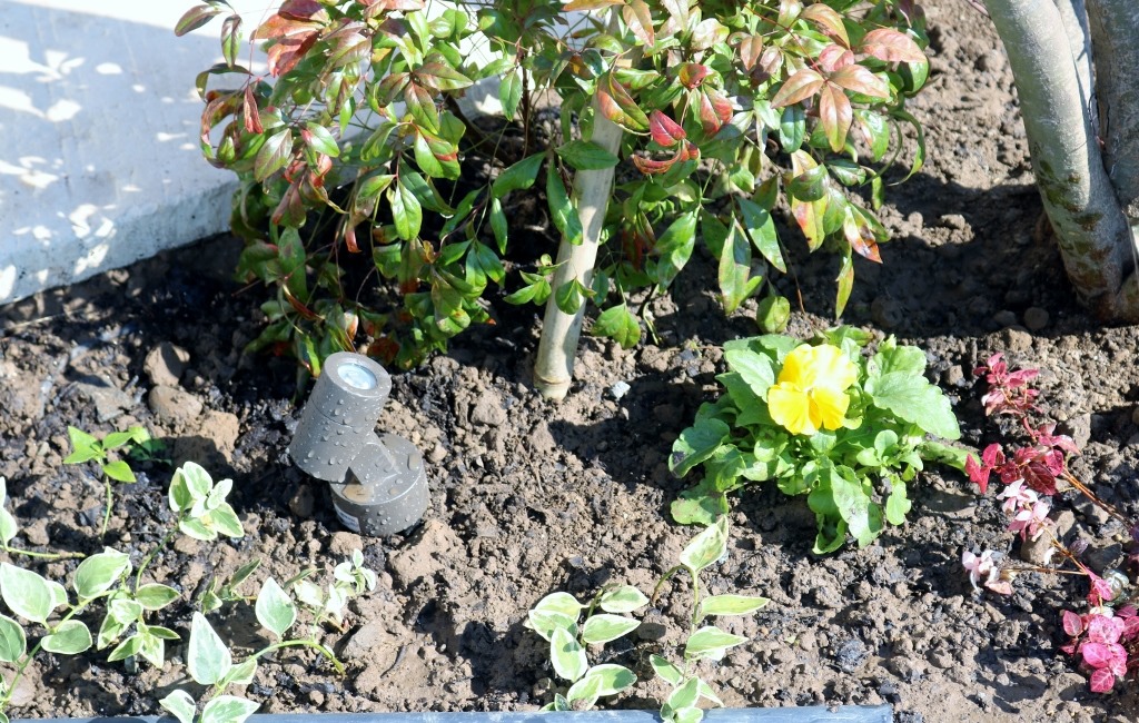 花壇・庭の土が残された空間に植木植栽をして数カ所にLIXIL美彩12vエクステリア照明を設置して夜も楽しめる庭にしています。