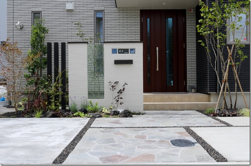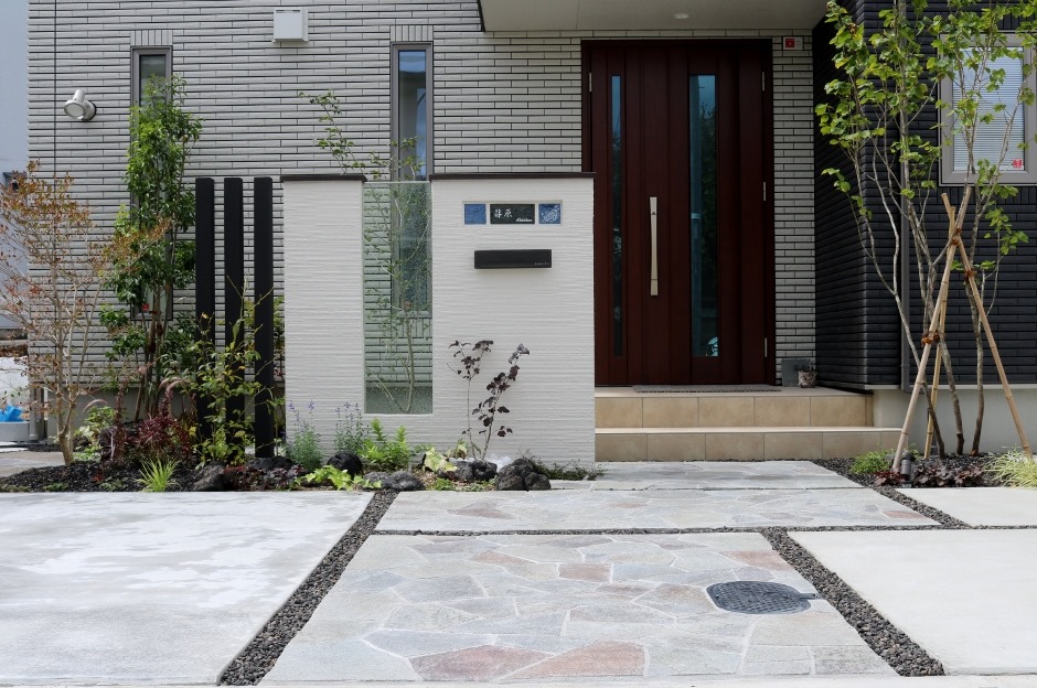 おかげさまで、シンプルながらもアクセントのあるとっても素敵な外溝になりました。