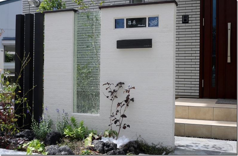 オリジナルサイン(合わせガラス和紙挟み)を取り付けた門柱