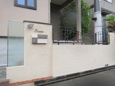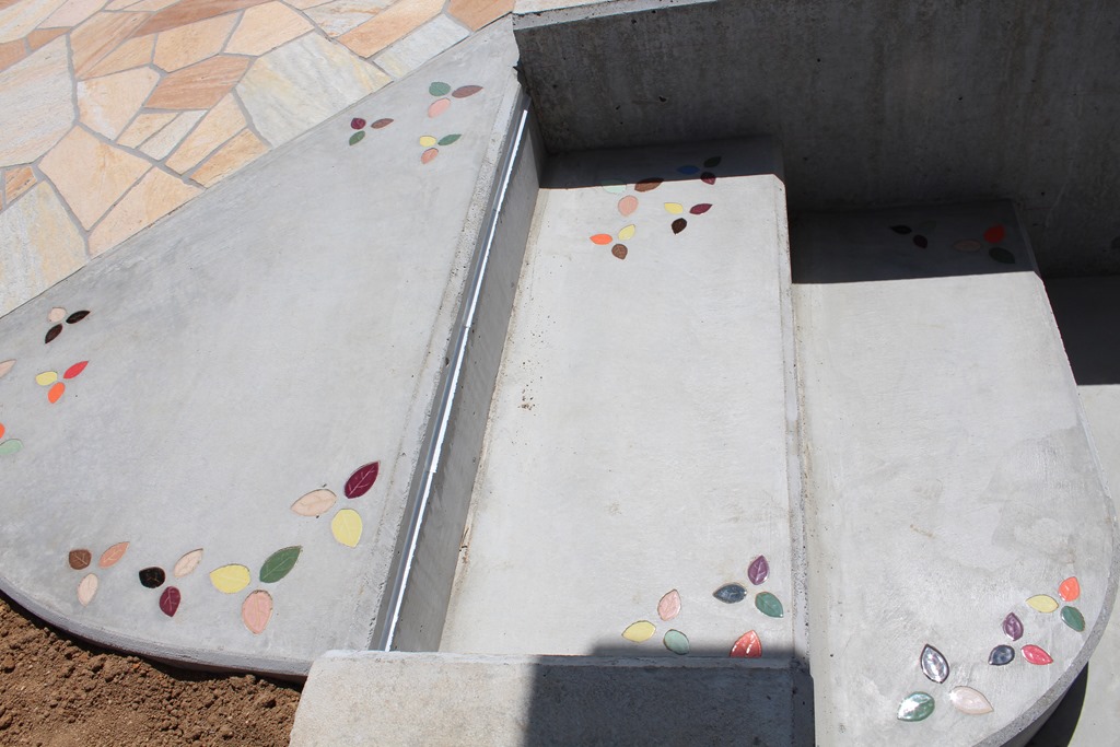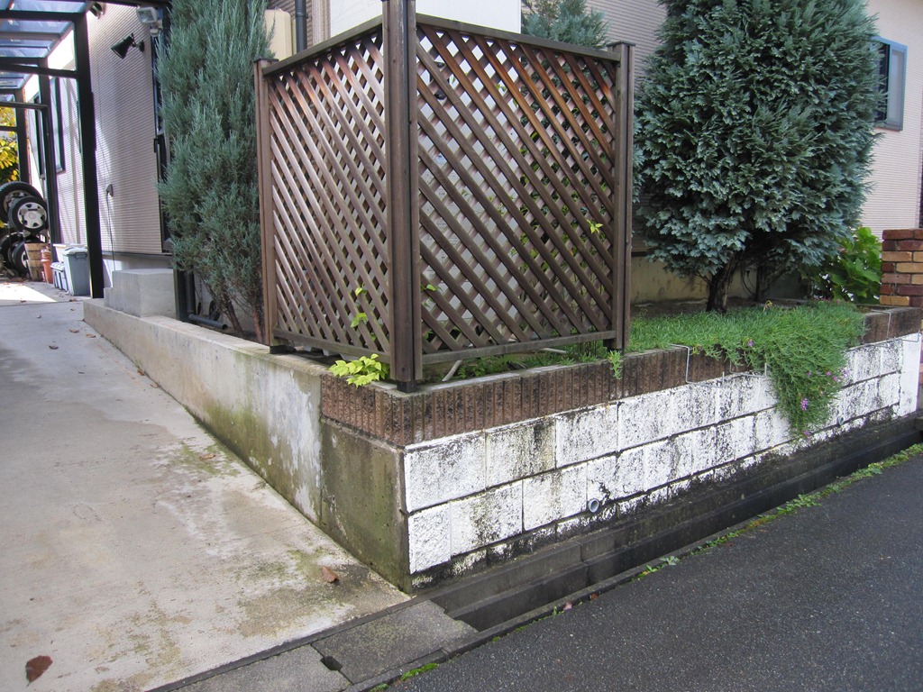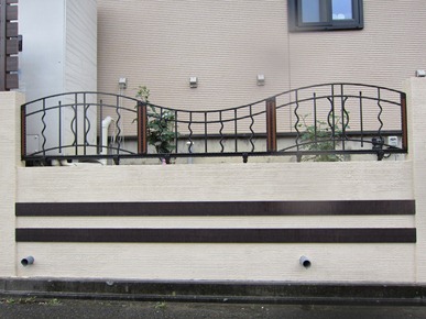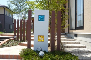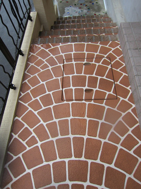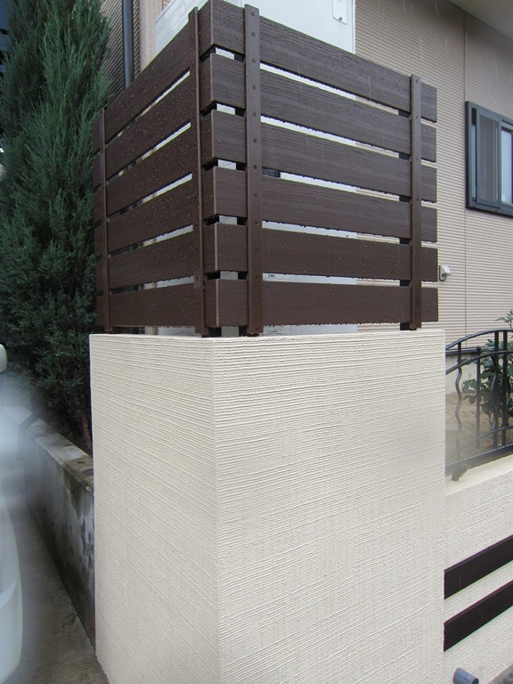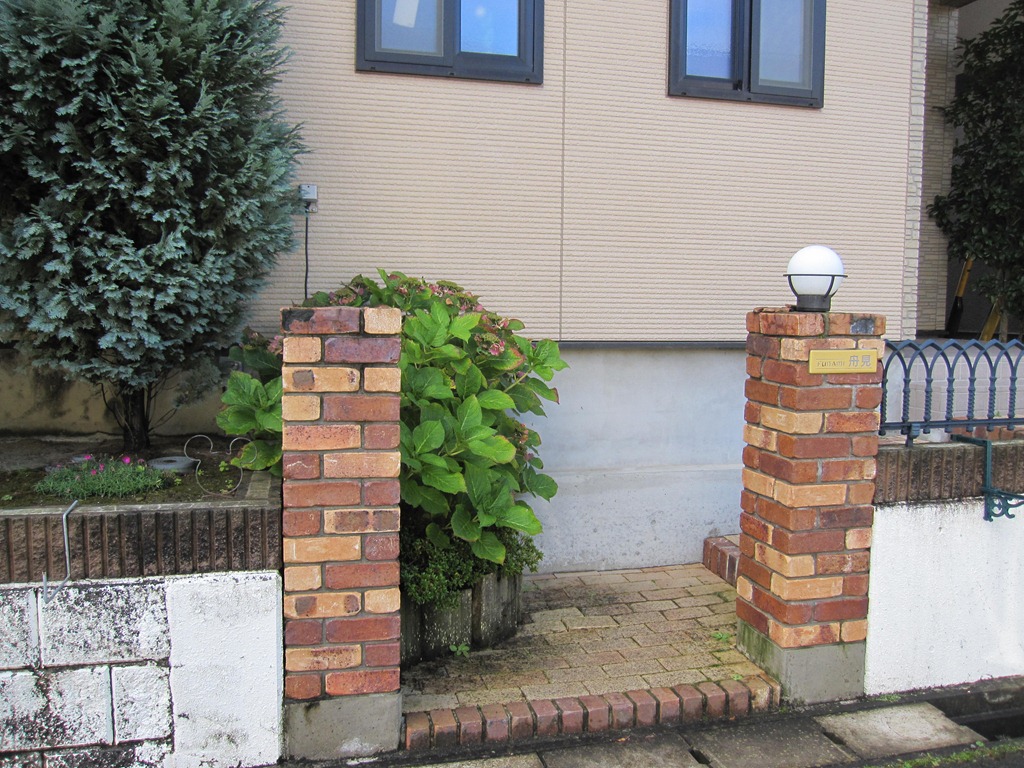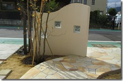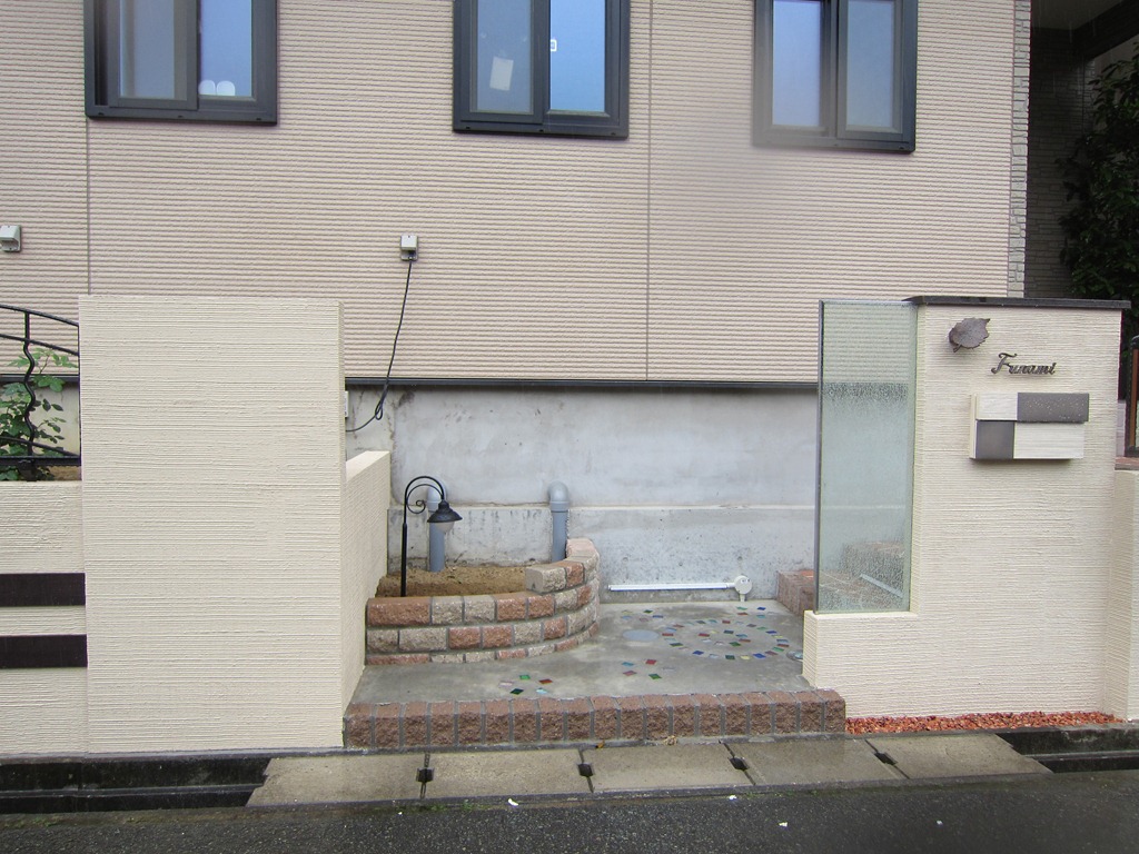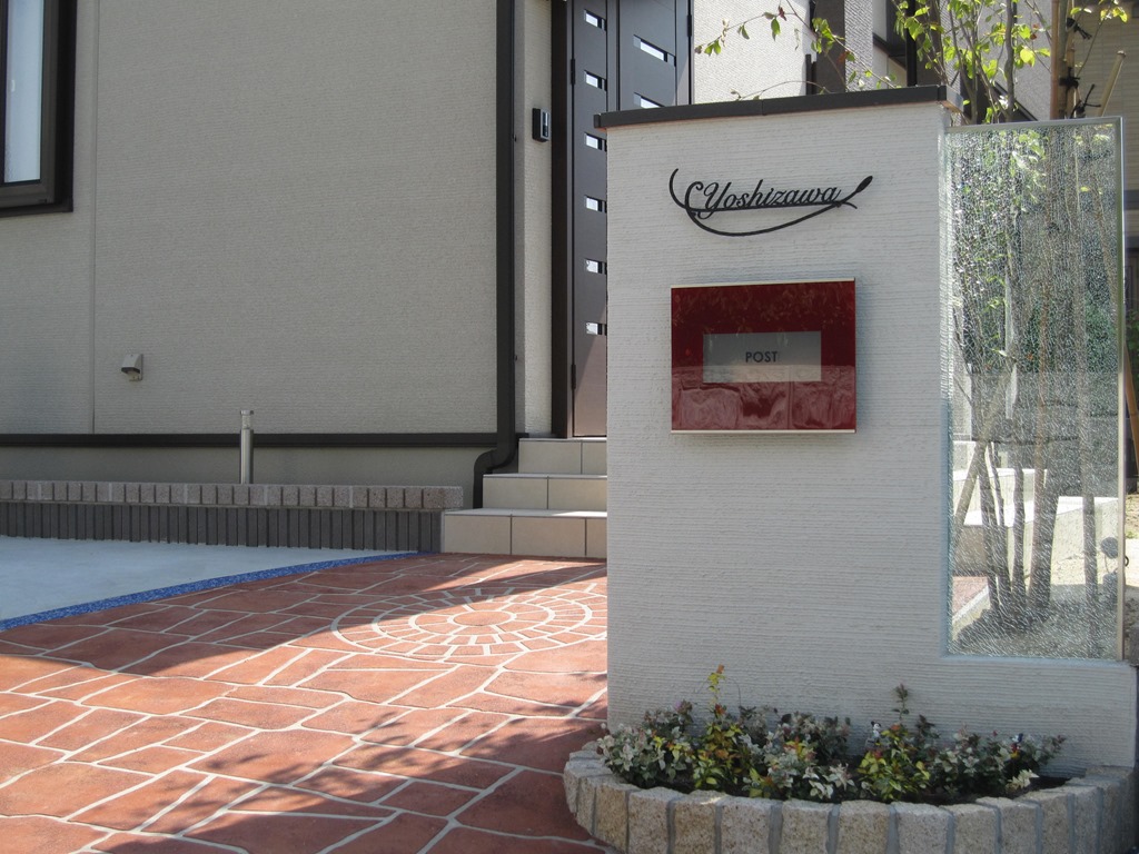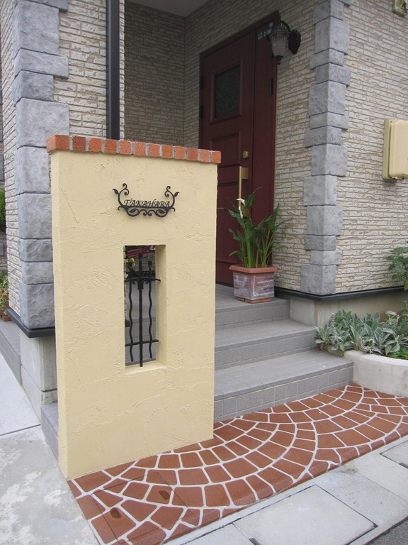 門柱の前にある、タメマスの蓋にもヨーロピアンの模様とテラコッタの色を付けた現場です、目に付く場所にあると綺麗には見えないタメマスの蓋をスプレーコンクリートの工法で仕上げると全然気になる事が無くなりました。この場所は既存のコンクリートがあり綺麗にするのをあきらめていた場所です。