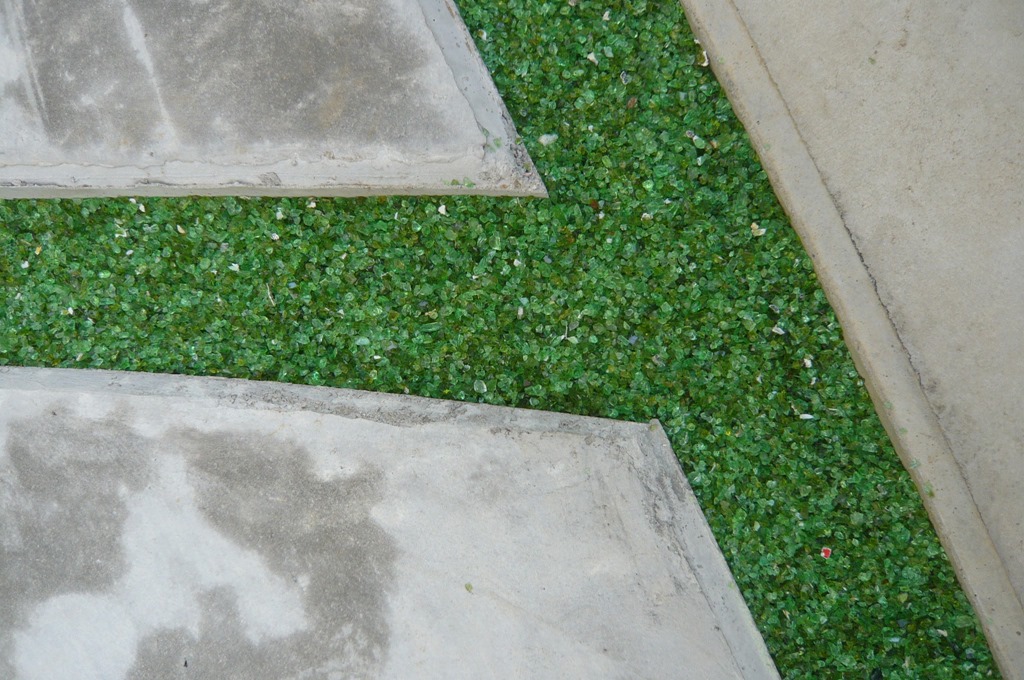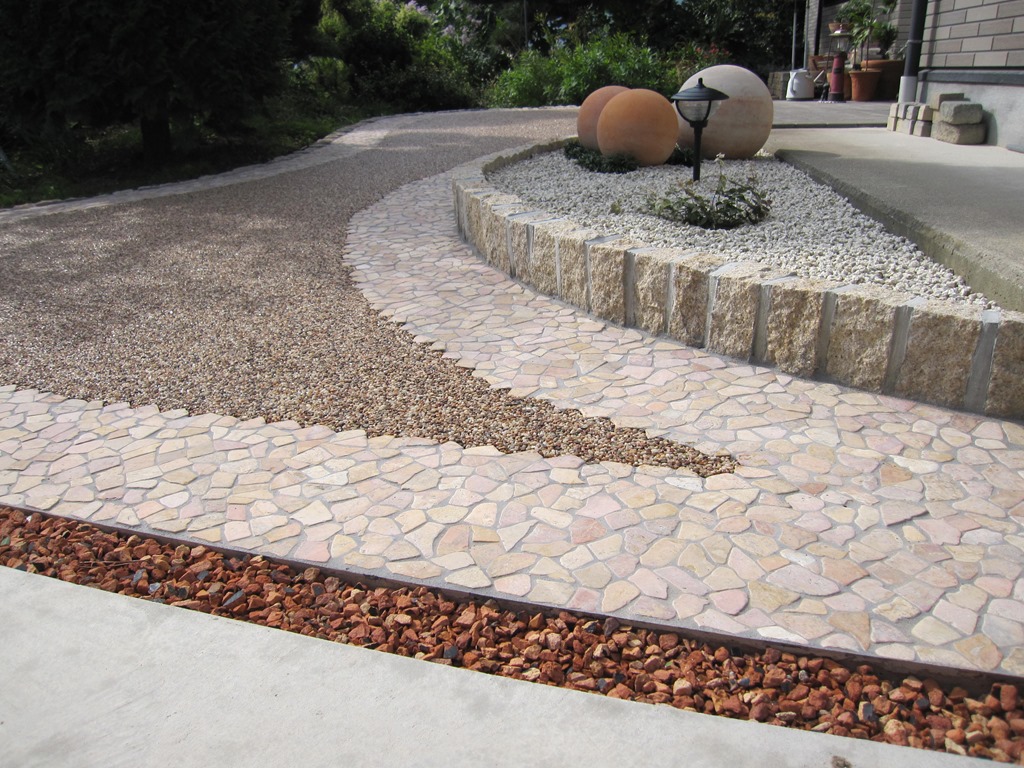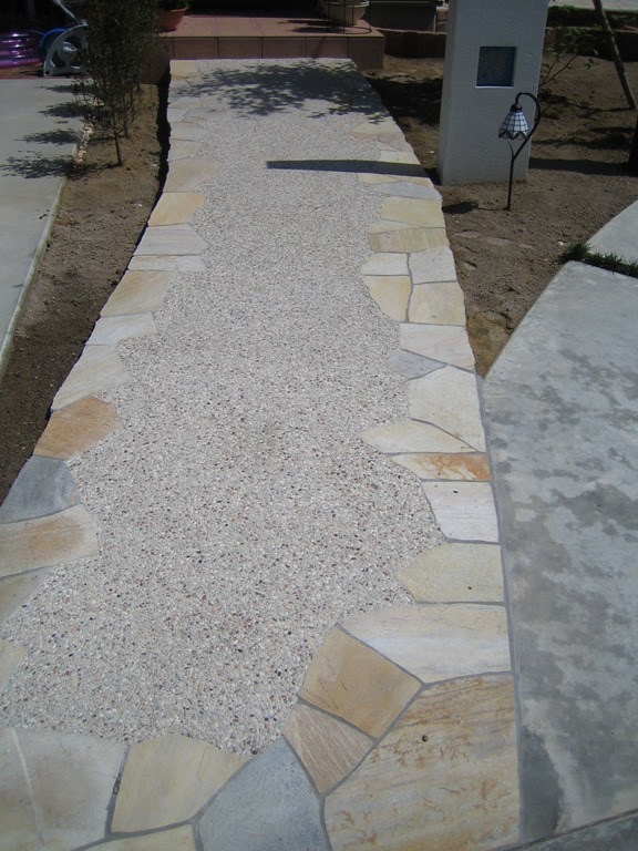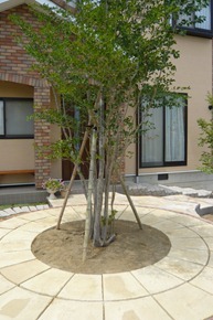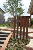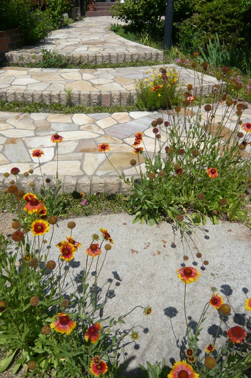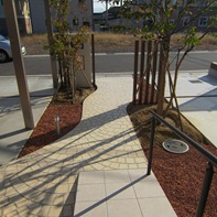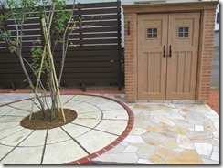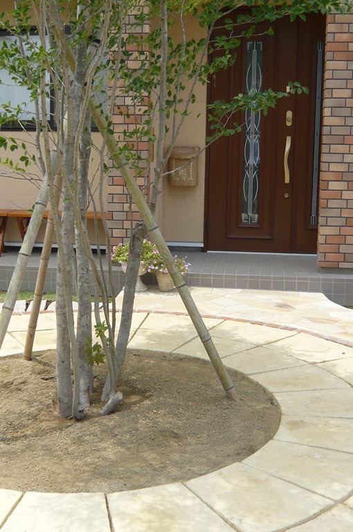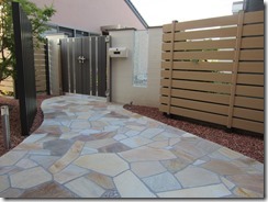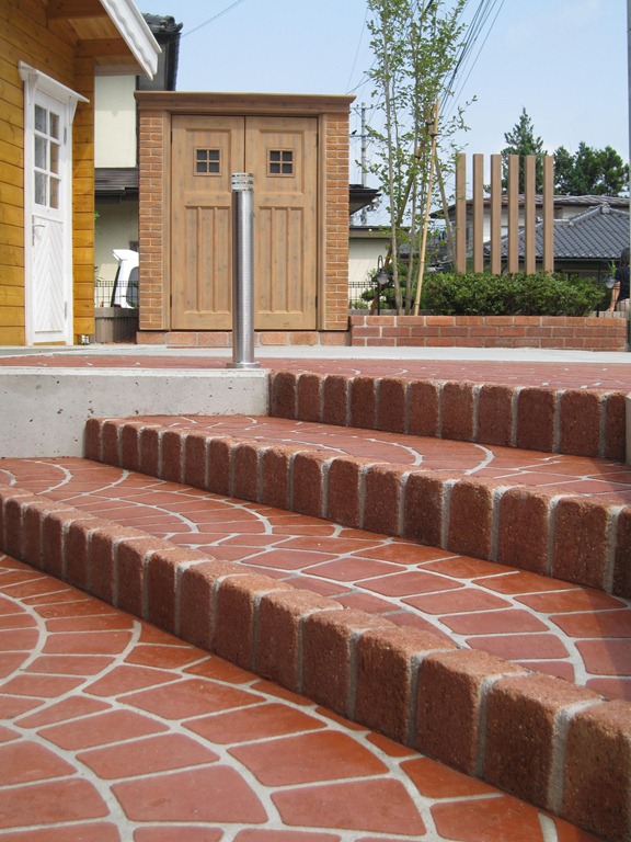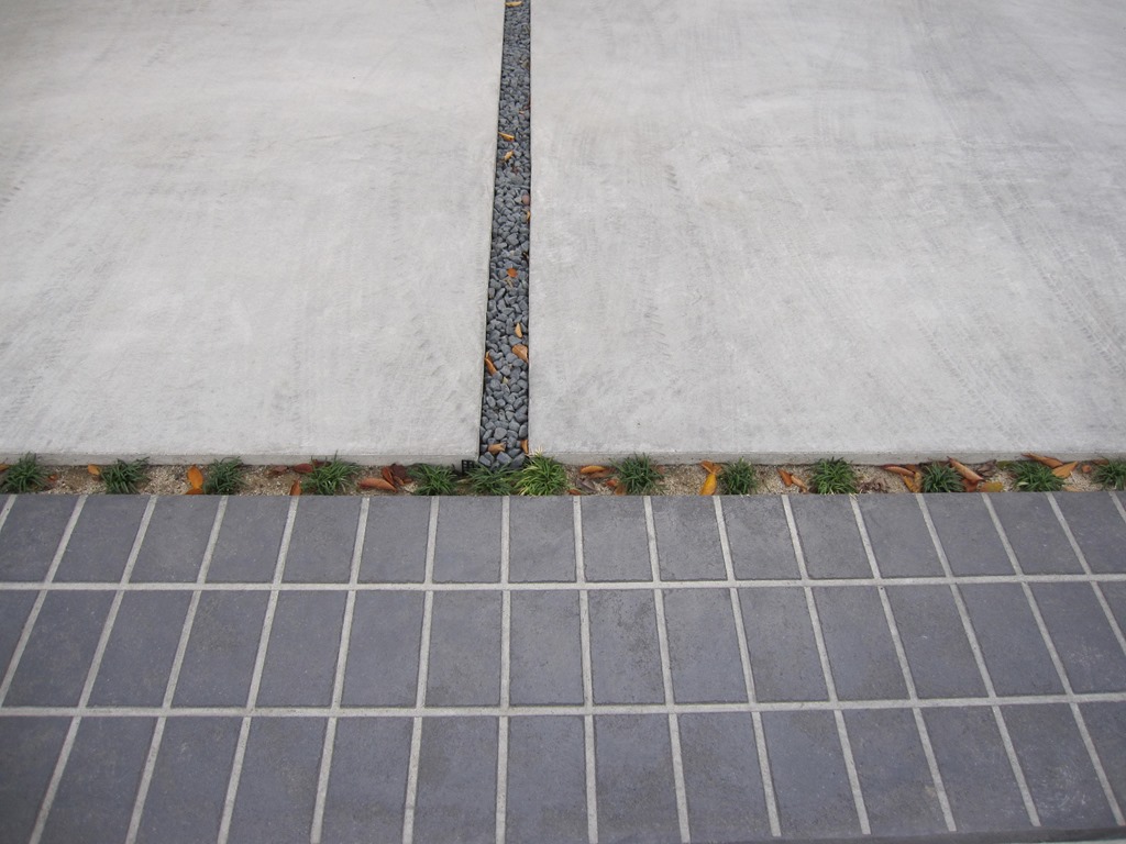 通路の両サイドをテコラ(破砕瓦)を敷きこむ事で、より通路部分が綺麗に際立って見えています。