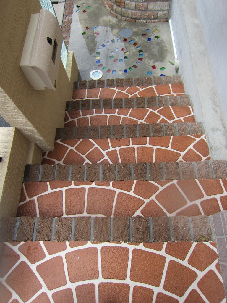 建物の横にあった既存のコンクリートの階段を、スプレーガンで仕上げた現場です、今まであったコンクリートの階段が見違えるように綺麗になりました。