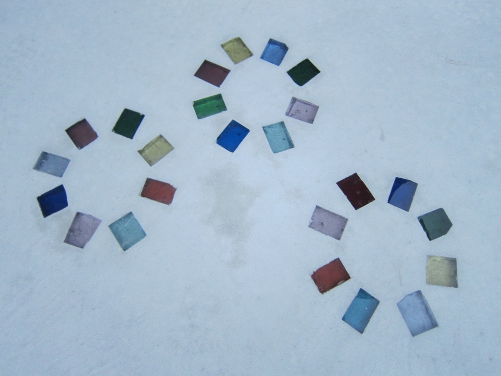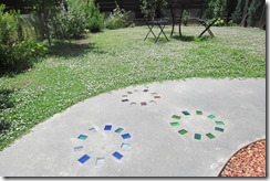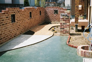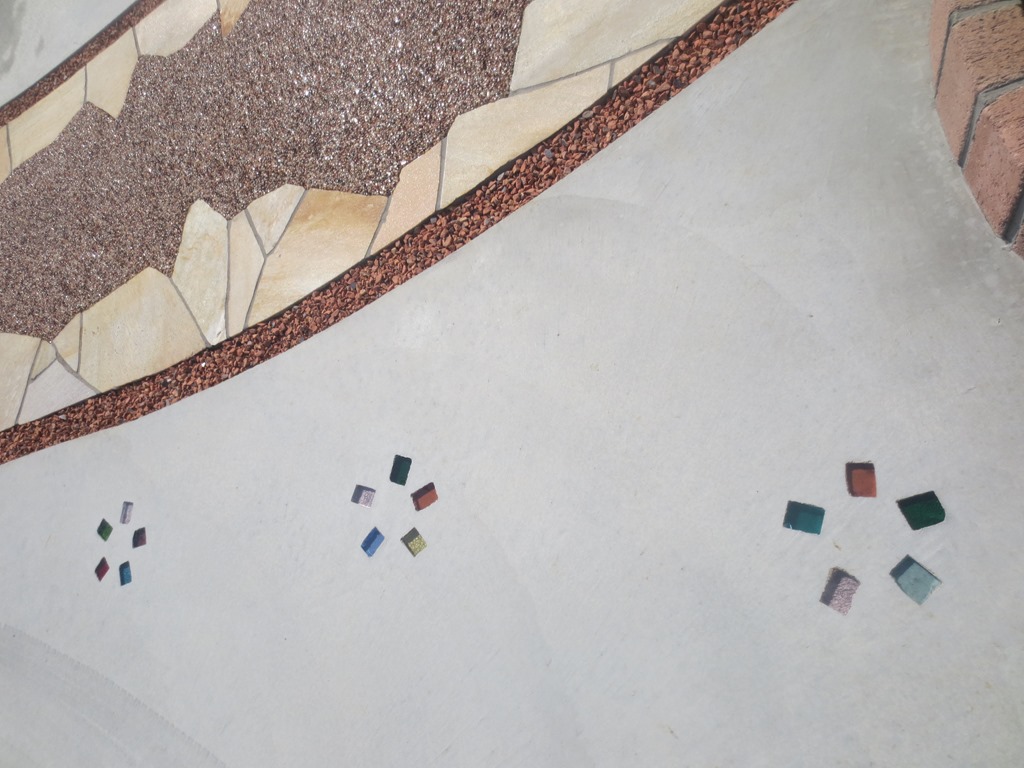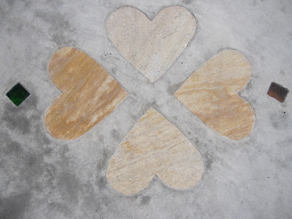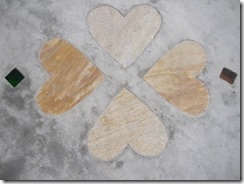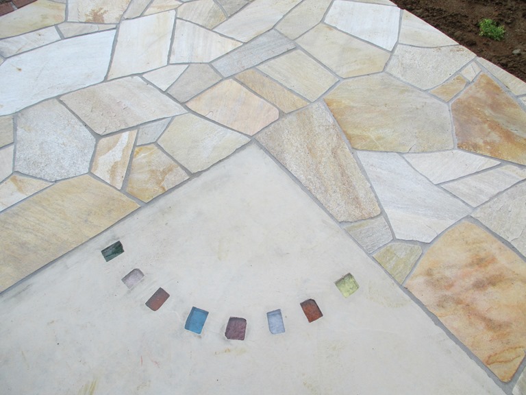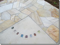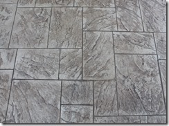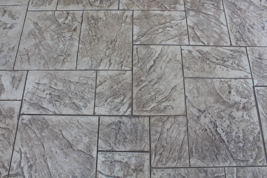 ステンシル(形紙)を使用した施工方法には、ふたつの工法があり、多くはコンクリート打設時に型紙を敷き上から色粉を撒きコテで押さえて仕上げる方法と、もうひとつは、今ある既存のコンクリートの土間にスプレーガンで吹き付ける方法です、前工法の場合は、型紙を剥がした場所は下地のコンクリートの色で仕上がりますが、後工法の場合は一旦既存の土間を色を付けてから型紙を敷くので目地の部分にも好きな色が付きます。