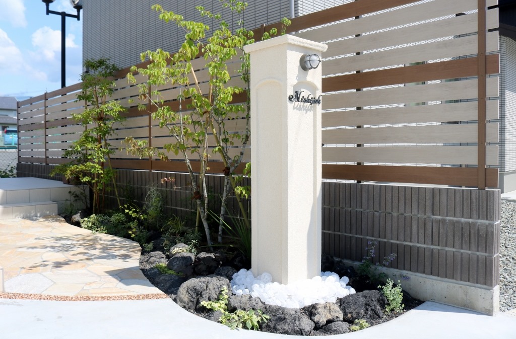 ディーズパティオ仕様のデザイン。 2019-09-152019-09-15 by View all posts by toledo In 外構デザイン集 Tagged アルファウッド2色づかい, ディーズパティオ仕様のデザイン, パティオ角柱 ディーズパティオ仕様のデザイン。 お客様の感想。 門柱スペースを大きく取りたくなかったのでディーズパティオ角柱を門柱にした外構デザインです。 目隠し塀もデイーズガーデン・アルファウッドを2色づかいに施工してデザインをお洒落にしました。