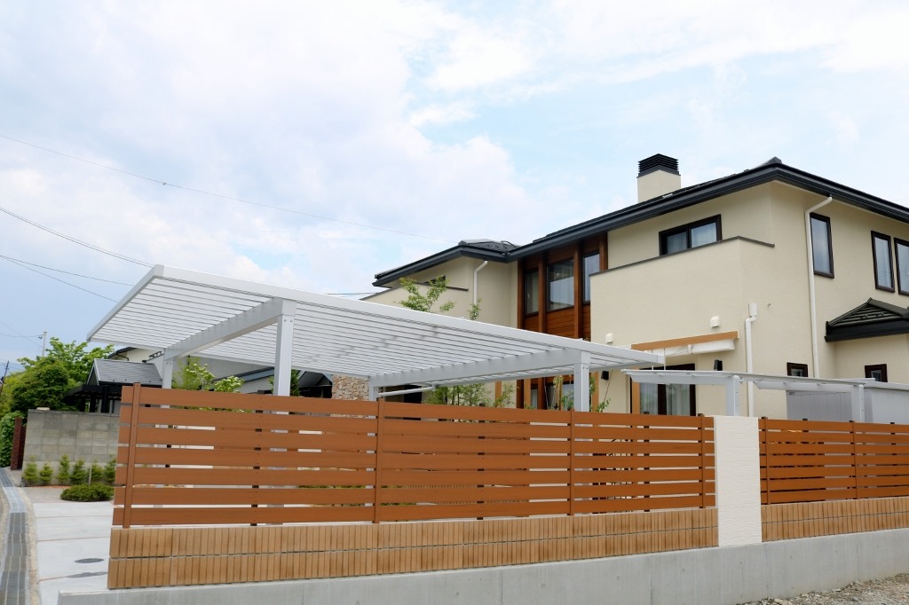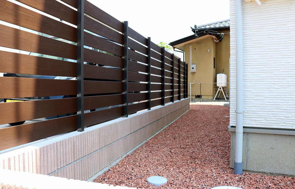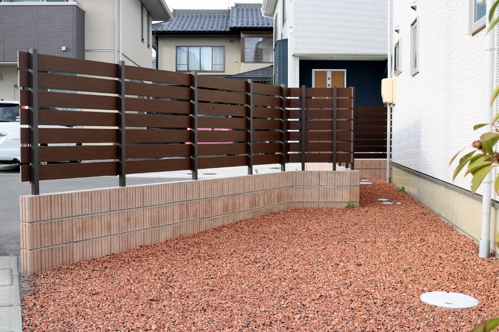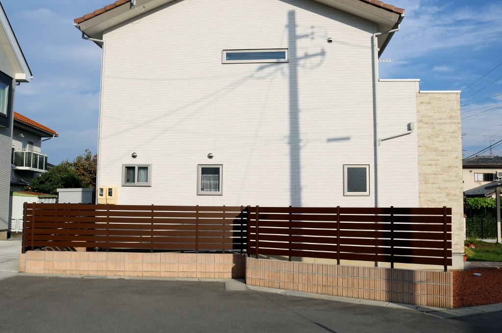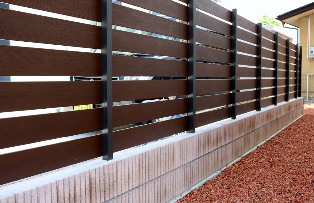 庭・隣地境界の目隠し、また外構工事のフェンスとして耐久性の強い樹脂板を使いナチュラルな木質感じながらメンテナンスの楽なアルファウッドでの施工が増えています。他メーカーからもたくさんの樹脂板が発売されていて、他メーカーよりも多少高価になりますが本物に近い質感・耐久性を考えるとお勧めしたい商品がアルファウッドになります。