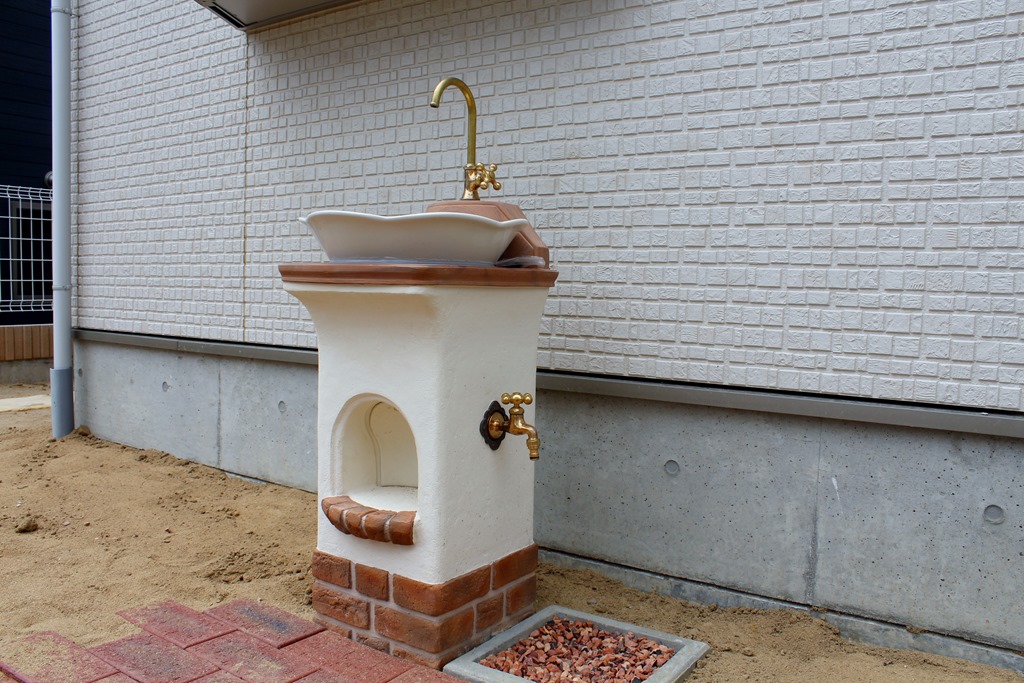 建物横にあった不凍栓をデイーズガーデンのスタンドウォッシュリリーと交換して使い易く、お洒落にしました。