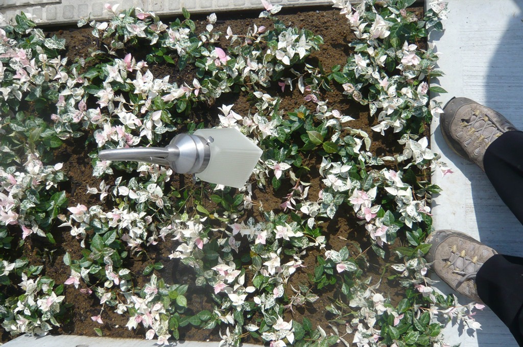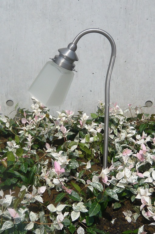 コンクリート打ちっ放しの門柱はシンプルですが、職人の腕の見せ所です。シンプルだからこそ簡単ではありません。見た目にも気を使っています。だからこそ飽きのこないデザインです。門柱前の花壇には常緑のハツユキカズラを植え、照明マリブライトも設置しています。