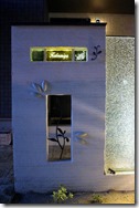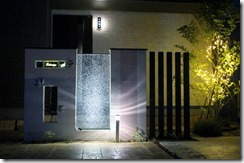 玄関前の門柱付近の昼間と夜の様子がこんな感じです。