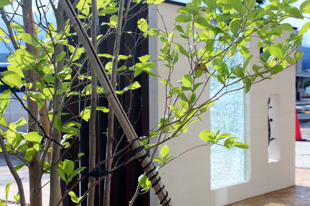 ココマテラスの西側は道路が近いので樹脂板フェンス・アルファウッドを目隠しにして庭には大きな株立の紅葉を植えました。