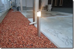 当初は門柱前物置前にLED照明を設置していて、カーポートの施工をした今回も新たにLED照明を追加しました。