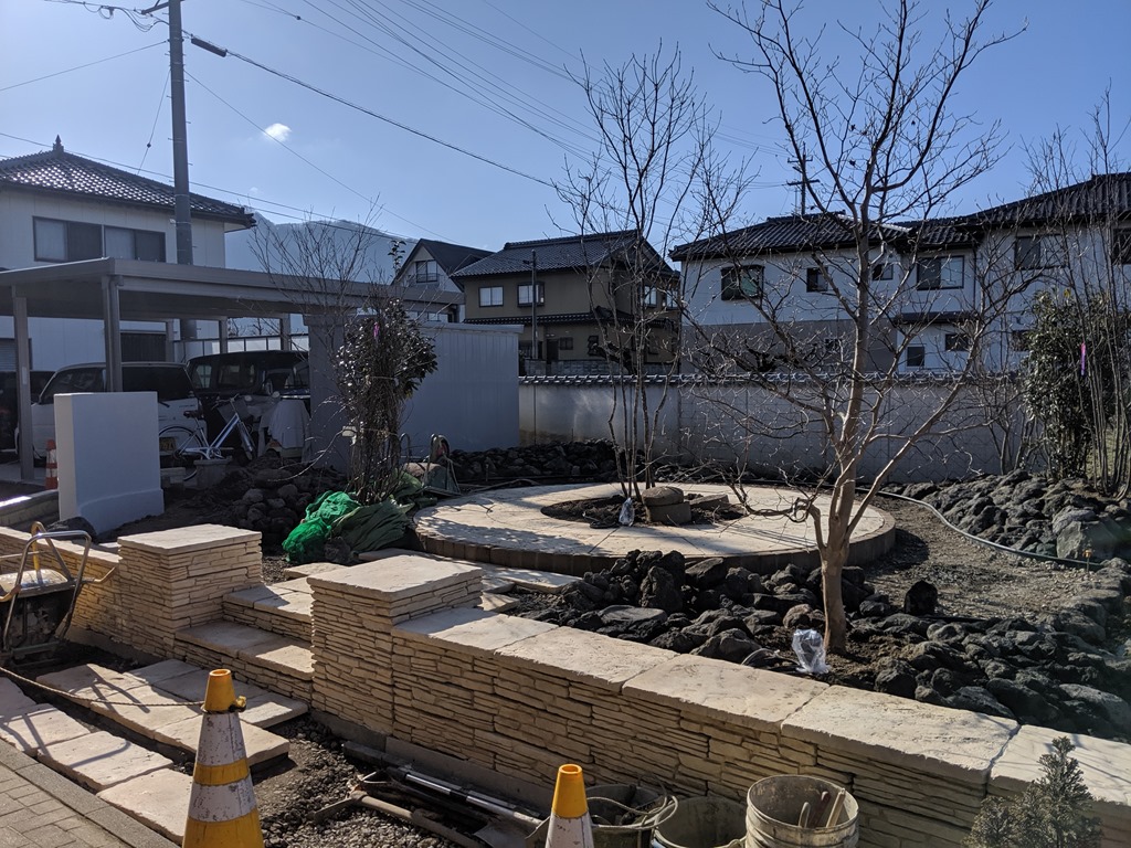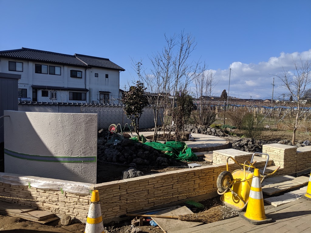まだ、作庭中ですがこれから春になり暖かくなったら中木・低木・下草・山野草と一気にグリーンの庭に変わっていくので楽しみにしていてください。