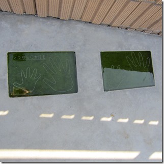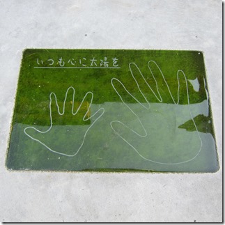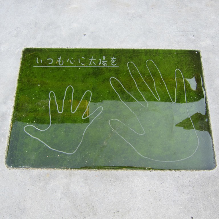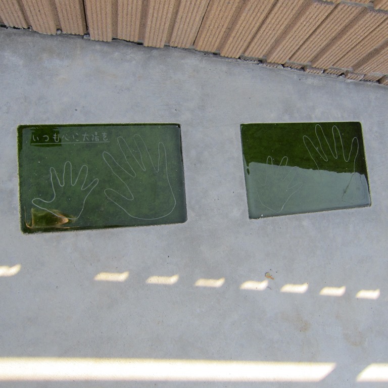 駐車場の床の中に、家族4人分の手形を彫り込んで作ったダルガラスを記念に埋め込みました。