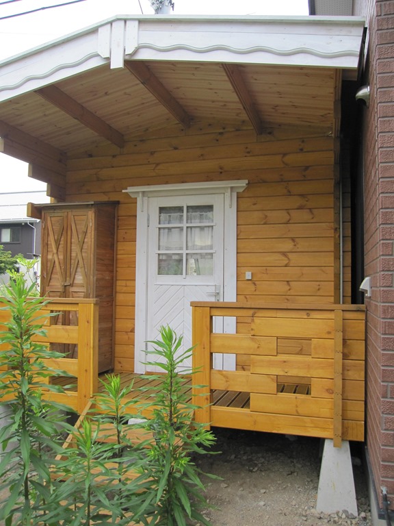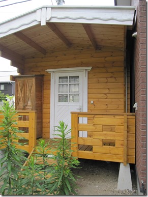 駐車場からも出入りができますが、本来の入り口は反対側で、母屋からも出入りができるように施工しています。
