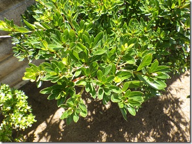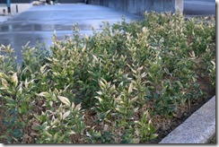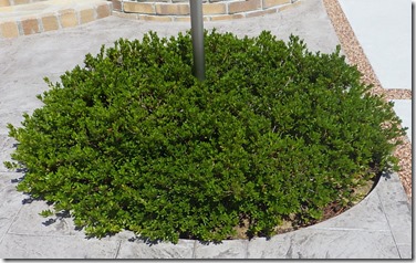 門柱前の花壇は、常緑のハツユキカヅラ・通路と駐車場の堺は常緑のサツキ植えこみ、西側の境界と駐車場後ろの土留め前にドウダンツツジを植えています。
