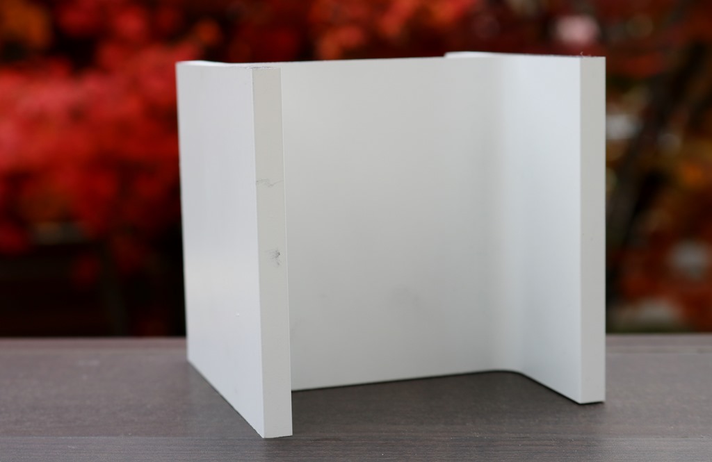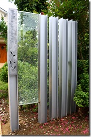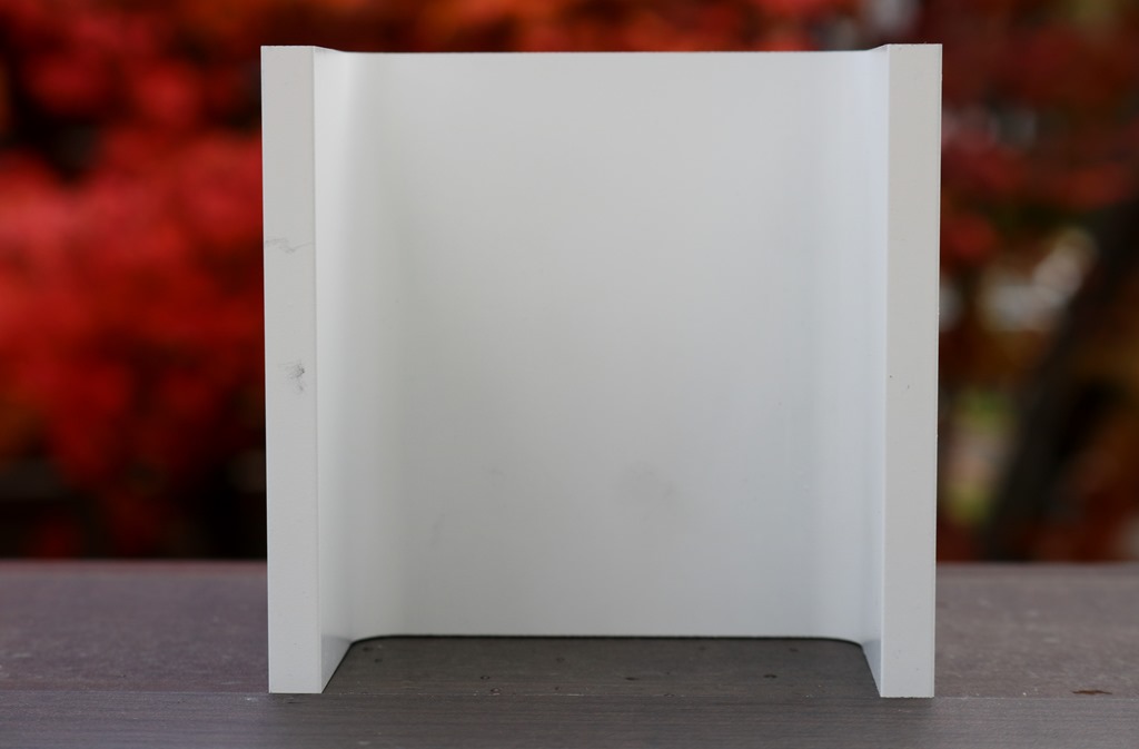 目隠しの樹脂板はアルファウッドを使用して7cm角のアルミ柱に取り付けています。