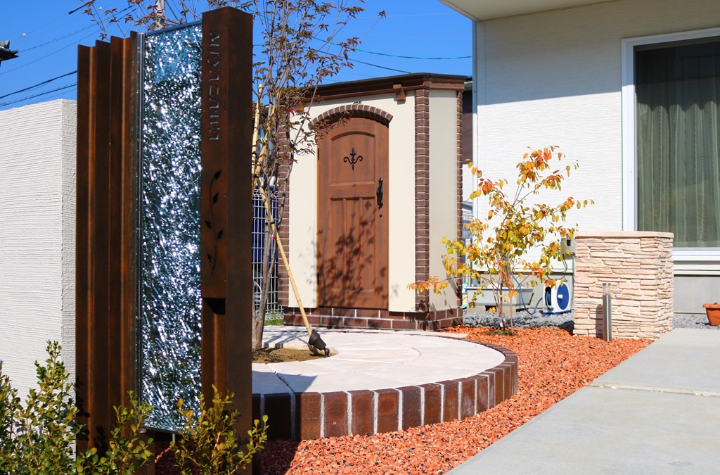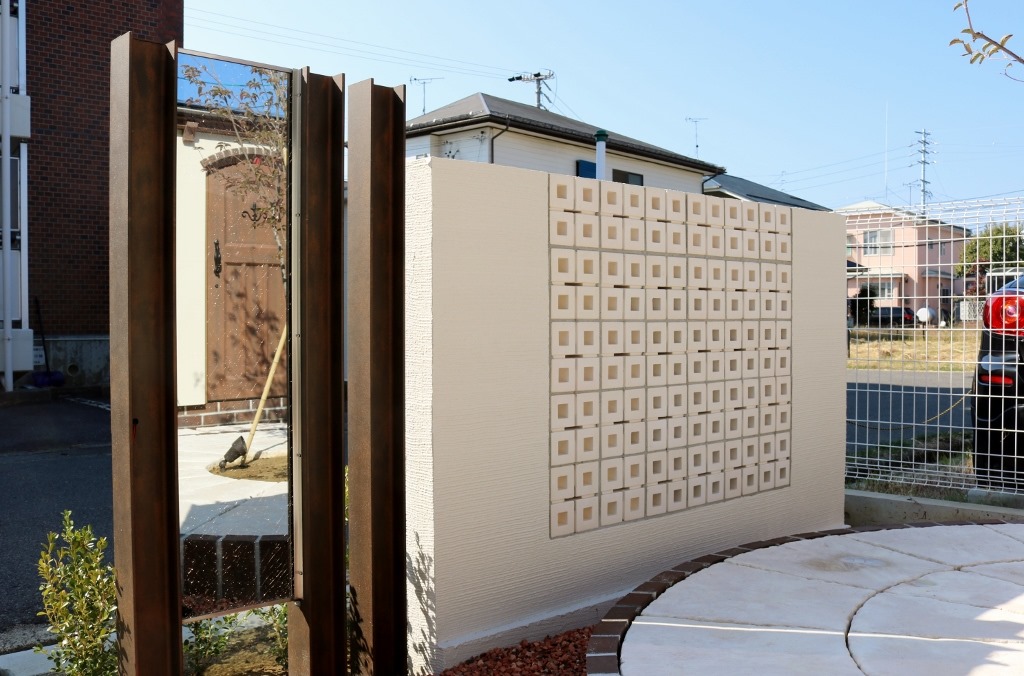 当社の作るエクステリアは、お客様も参加できるものが多くあります。この現場でもサインの下のデザインはお客様が自分の好きなデザインで作る事も出来るのです。