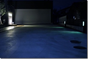 3台分の駐車スペースの後ろ側に、クリーンマクラギを立て、マクラギにLED照明を取り付けることで、夜遅く暗くなってからの帰宅でも、安心して車が止められるように工夫しました。