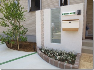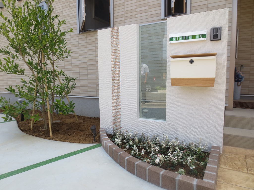 門柱はYKKのルシアスウォールWD02型のショコラウォールを。