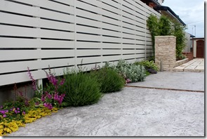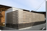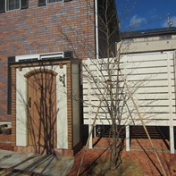 カンナ物置キュートの横から庭の東側の境界にアルファウッドの施工をしました。