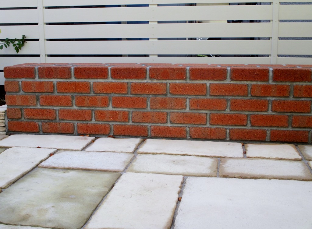 アルファウッドはアイボリーを仕様したのでレンガを積んで造ったベンチも良く映えます。