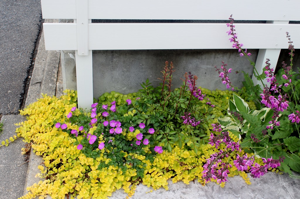 ガーデニングなどが好きな場合は、白い板塀がとても良く合います。