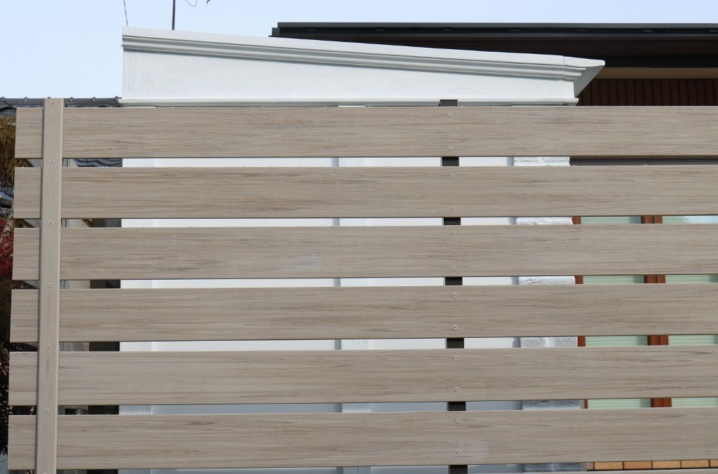 耐候性樹脂フェンスの需要が多く新色が登場しました。 エクステリアデザインで樹脂フェンス新色を使用した須坂市の外構。