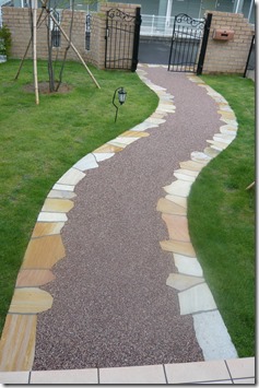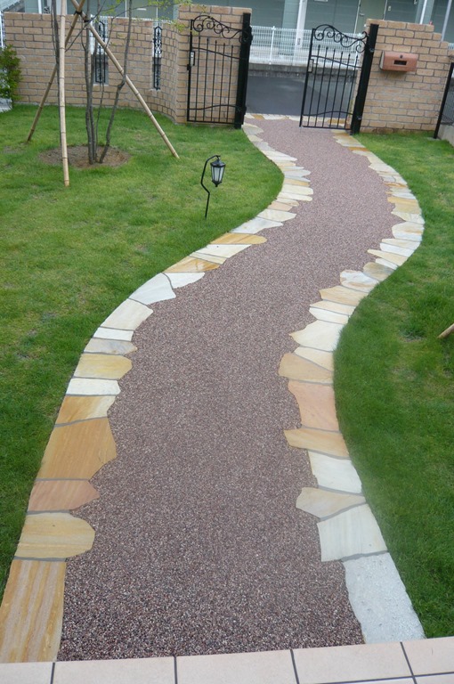 ●通路 スタンプコンクリートヨーロピアン,立ち上がり御影石二丁掛