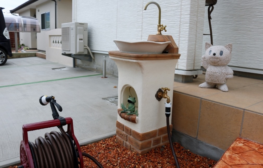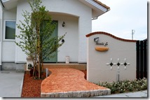 ディーズガーデンのエクステリアアイテムには可愛い商品がたくさんあり、門柱に・玄関前に庭にデイーズガーデンの商品を使用した外構デザインは中野市の現場です。