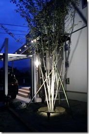 シンボルツリーは、アップライト照明を設置して暗くなると樹が見えるようにライトアップさせています。