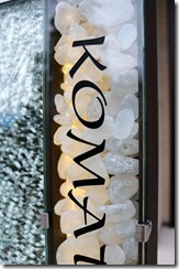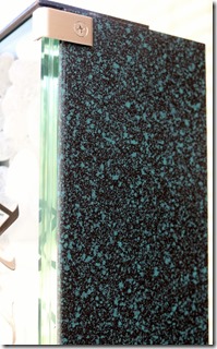 ジュエルグラスはミラーを仕様して合わせガラスで12㍉あるガラスサインの中にリコストーンを入れて夜に照明が点灯するようにしています。