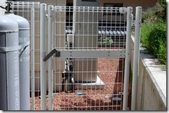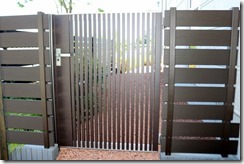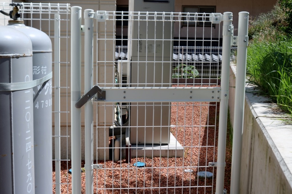 門柱横はアルミ門扉で、駐車場から裏側に回れる場所はメッシュ門扉でふさいてしまいました。