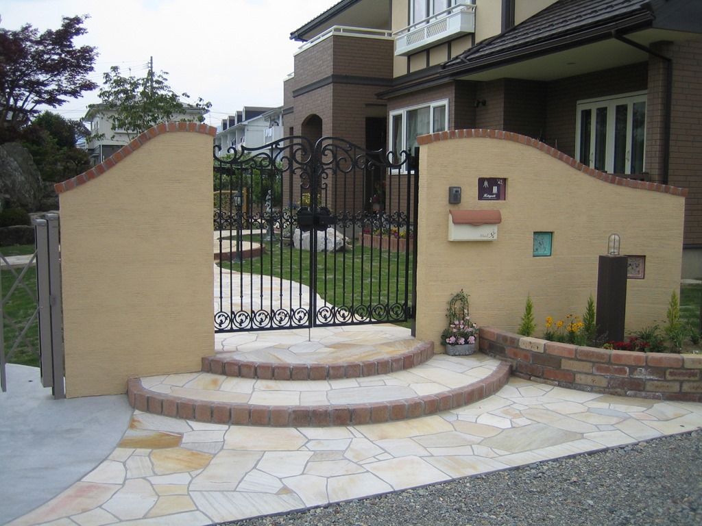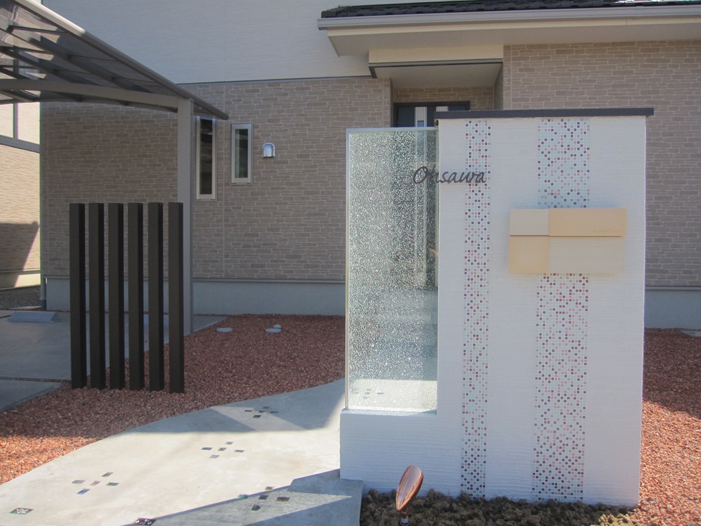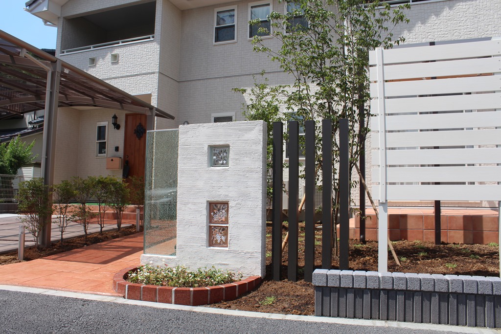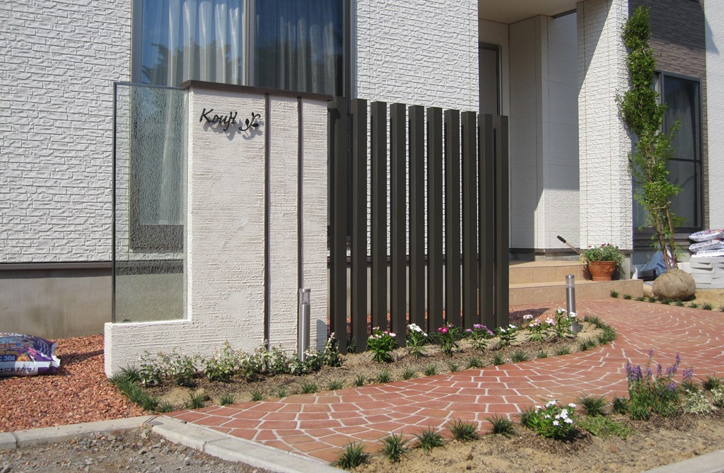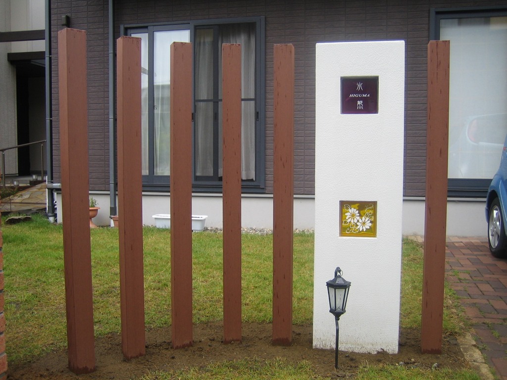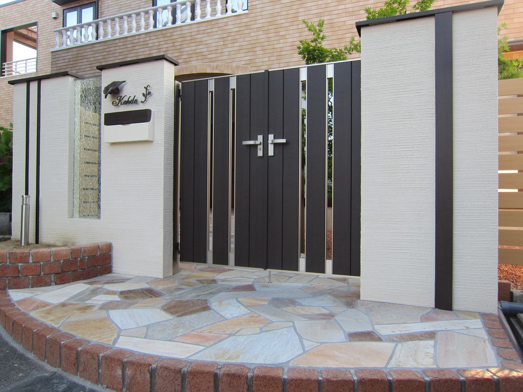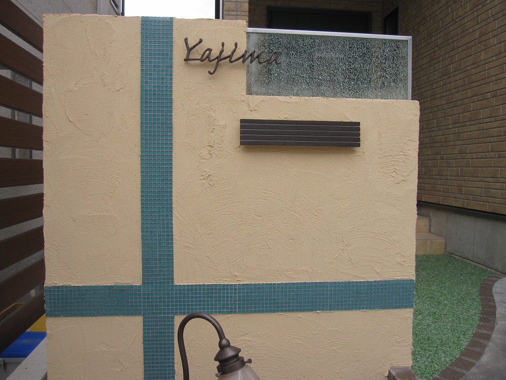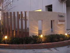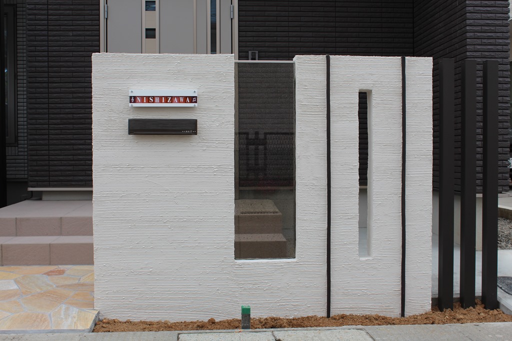 その他、コンクリート打ちっぱなしの門柱、塗り壁に煉瓦を埋め込んでみたり、お客様の要望でいろいろなデザインができます。