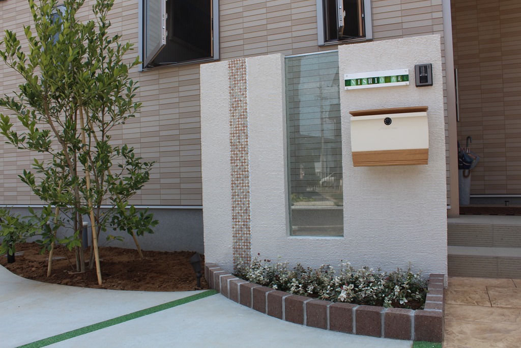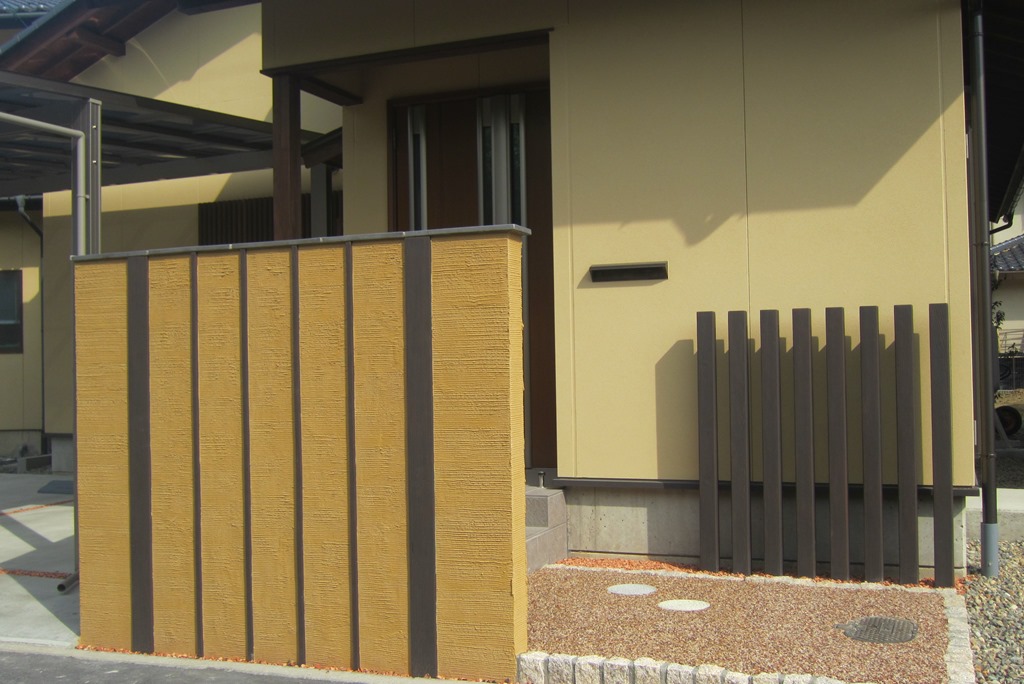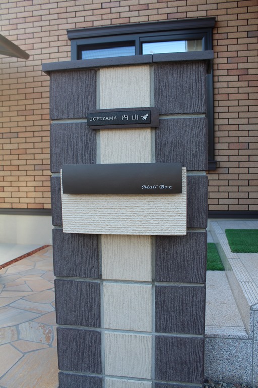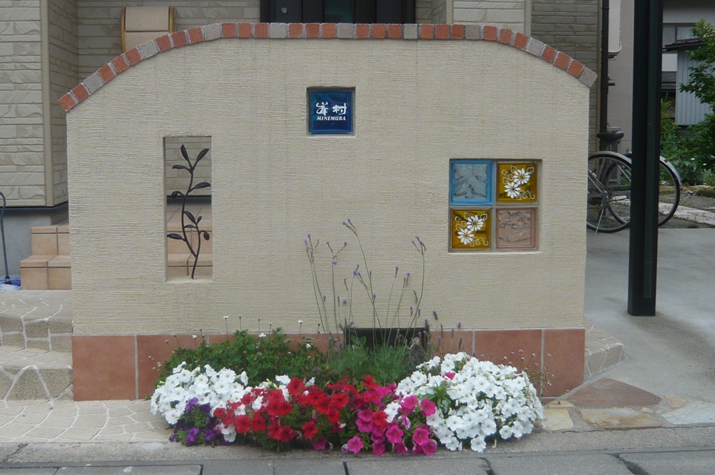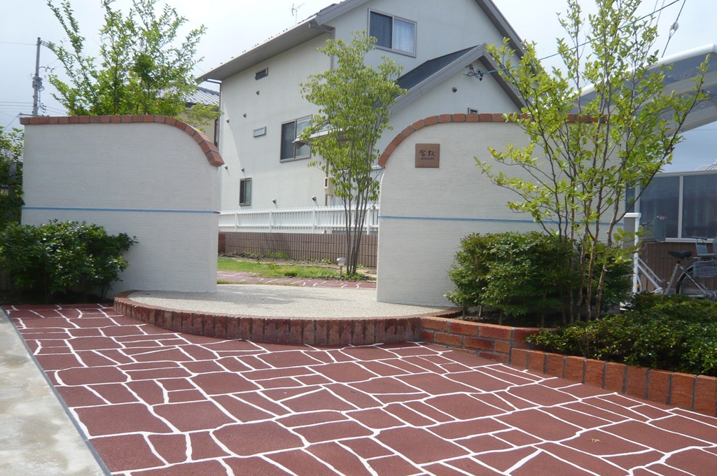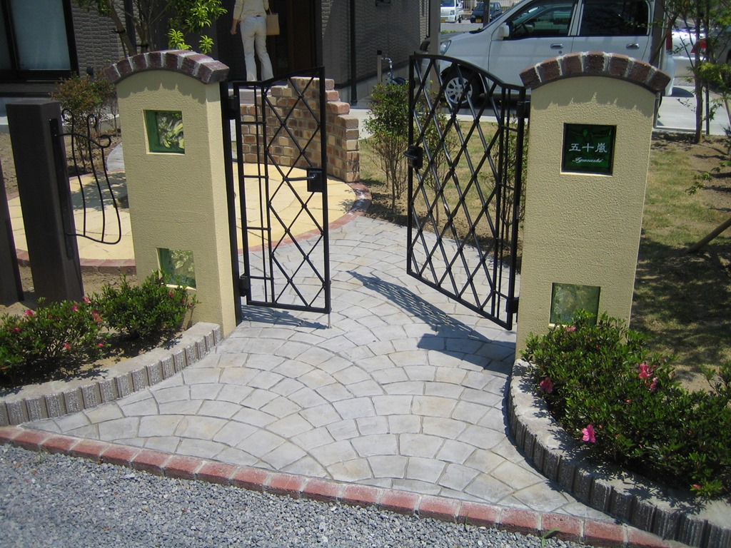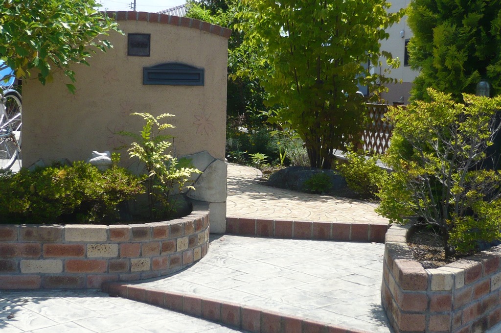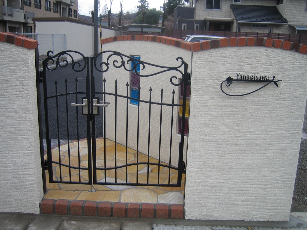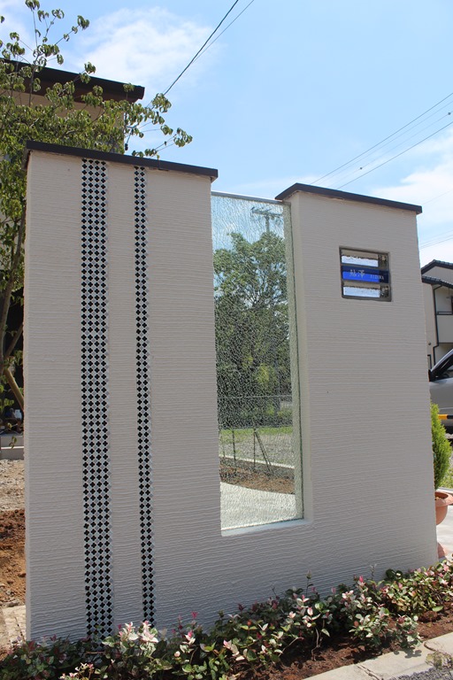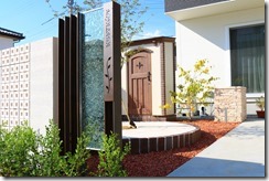 その他、コンクリート打ちっぱなしの門柱、塗り壁に煉瓦を埋め込んでみたり、お客様の要望でいろいろなデザインができます。