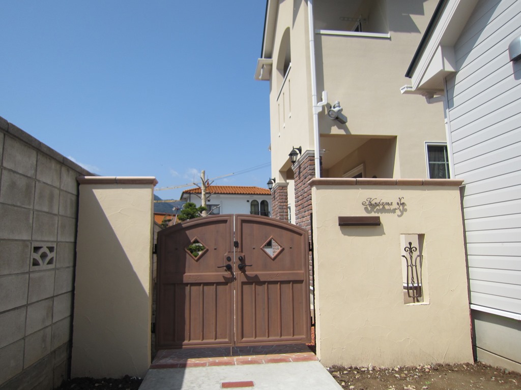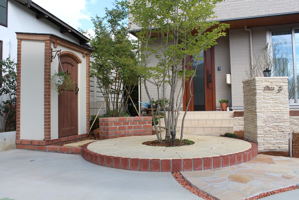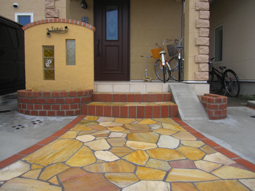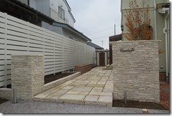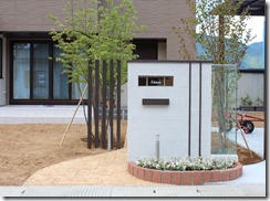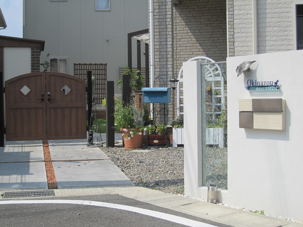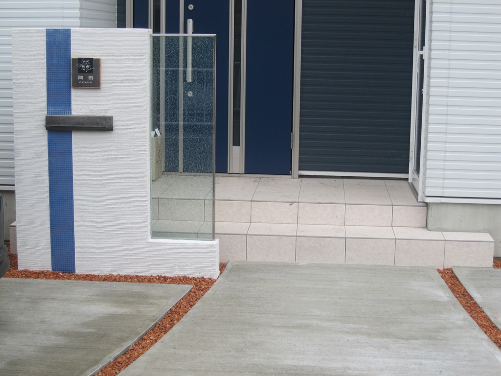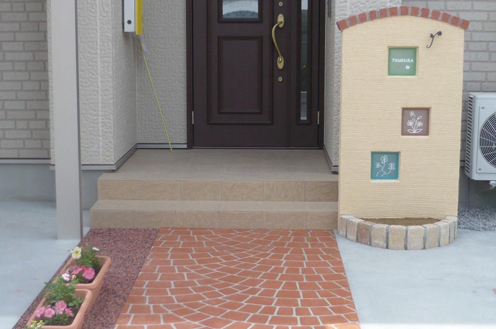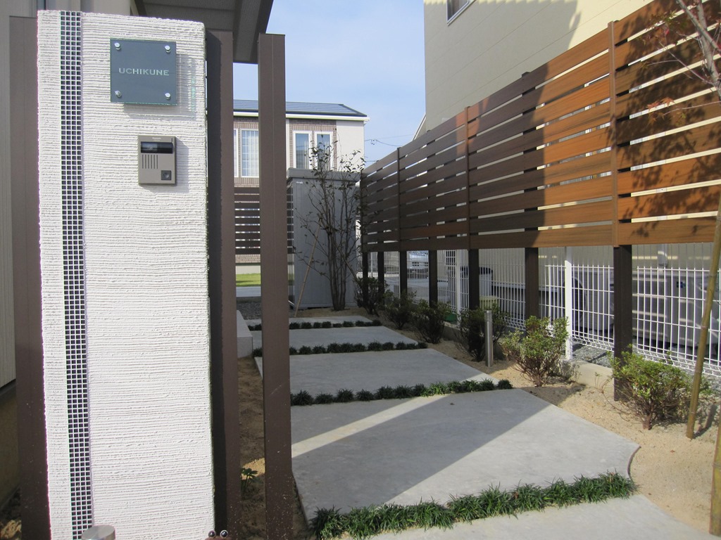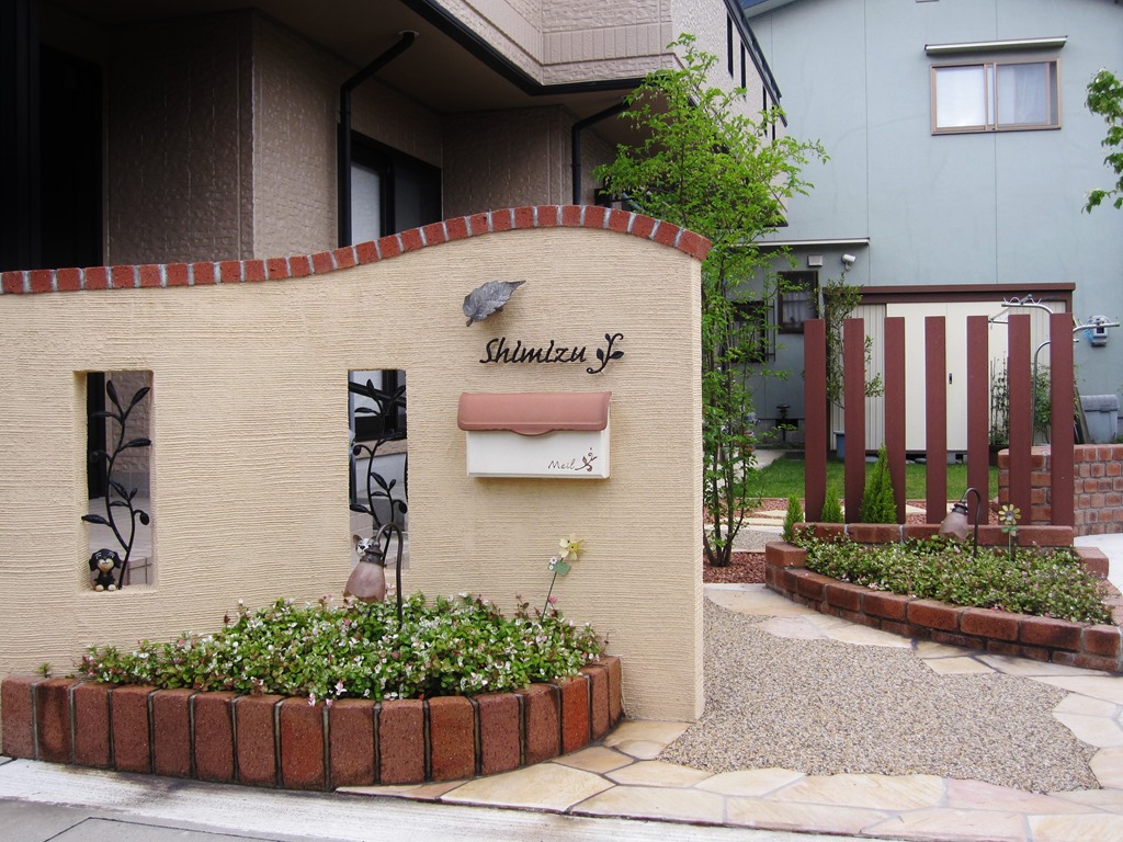 その他、コンクリート打ちっぱなしの門柱、塗り壁に煉瓦を埋め込んでみたり、お客様の要望でいろいろなデザインができます。