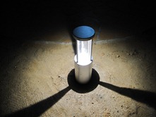 門柱の前にガーデンポールライト2型・サークルの中にはパワーLEDマルチアップライト・玄関前の通路の横にパワーLEDポールライト4型を設置しています、全部で4Wの消費電力、1日8時間使用しても約43円で済んでしまうのもLED照明の特徴のひとつです。