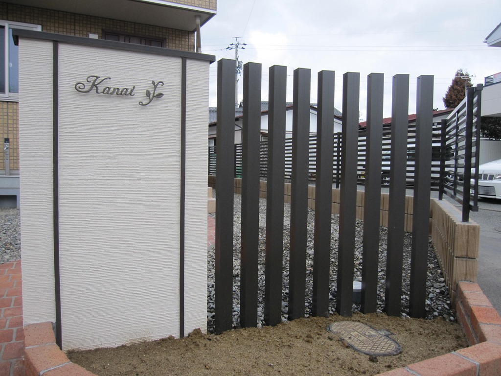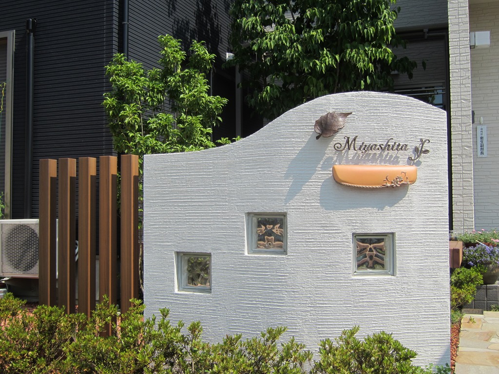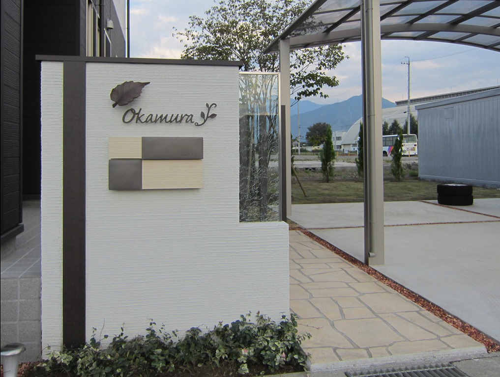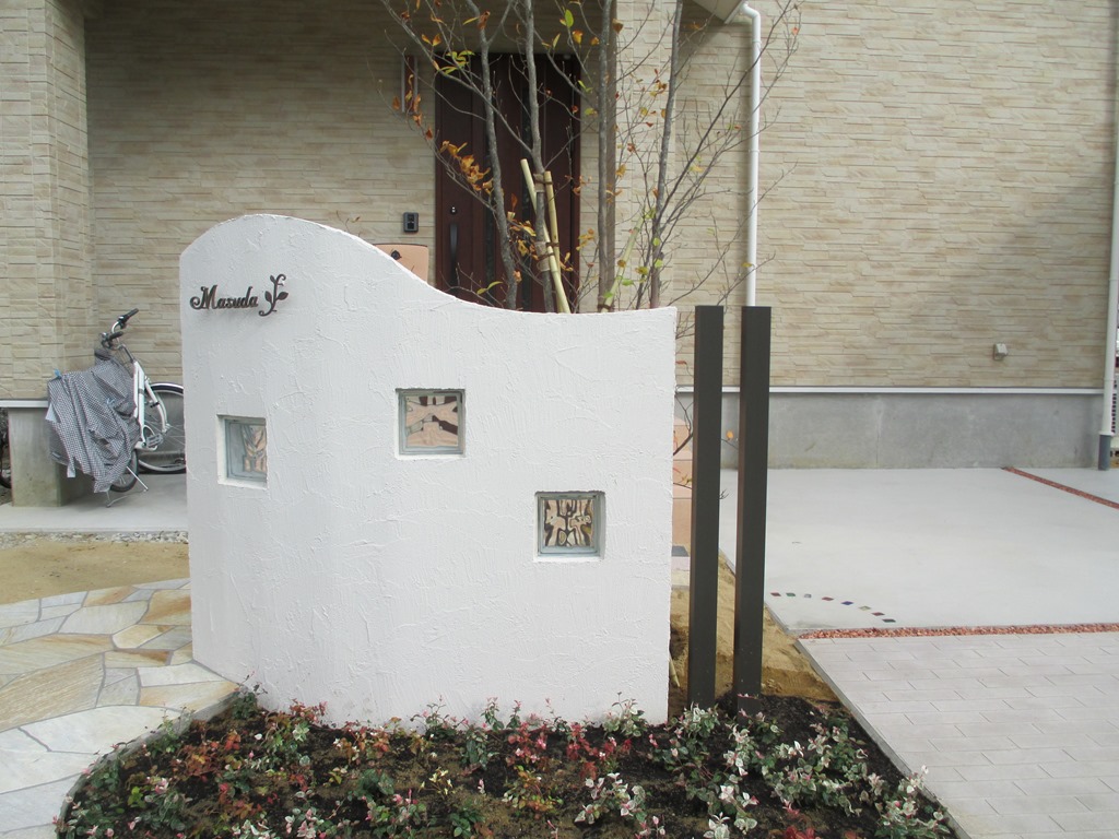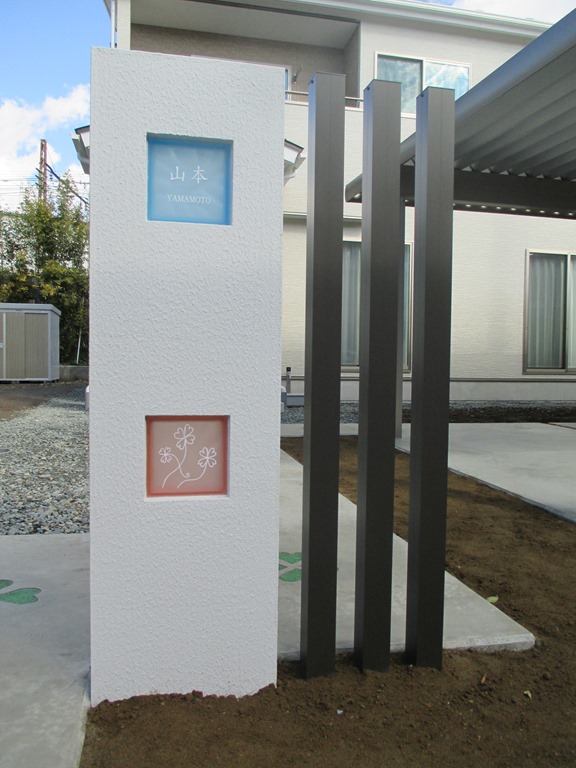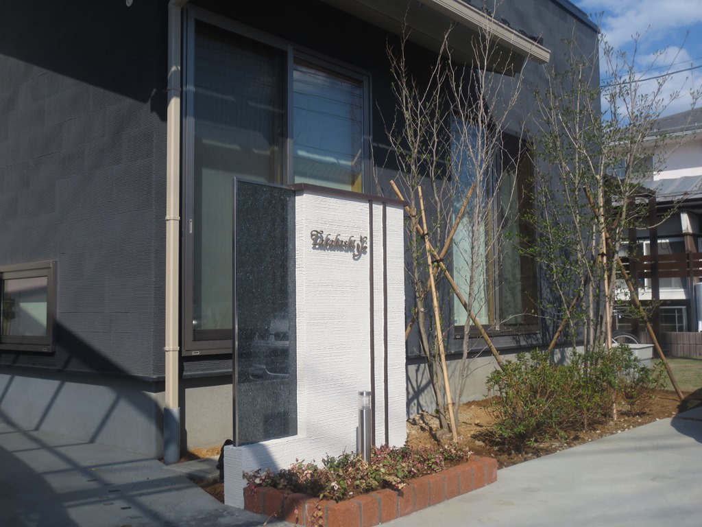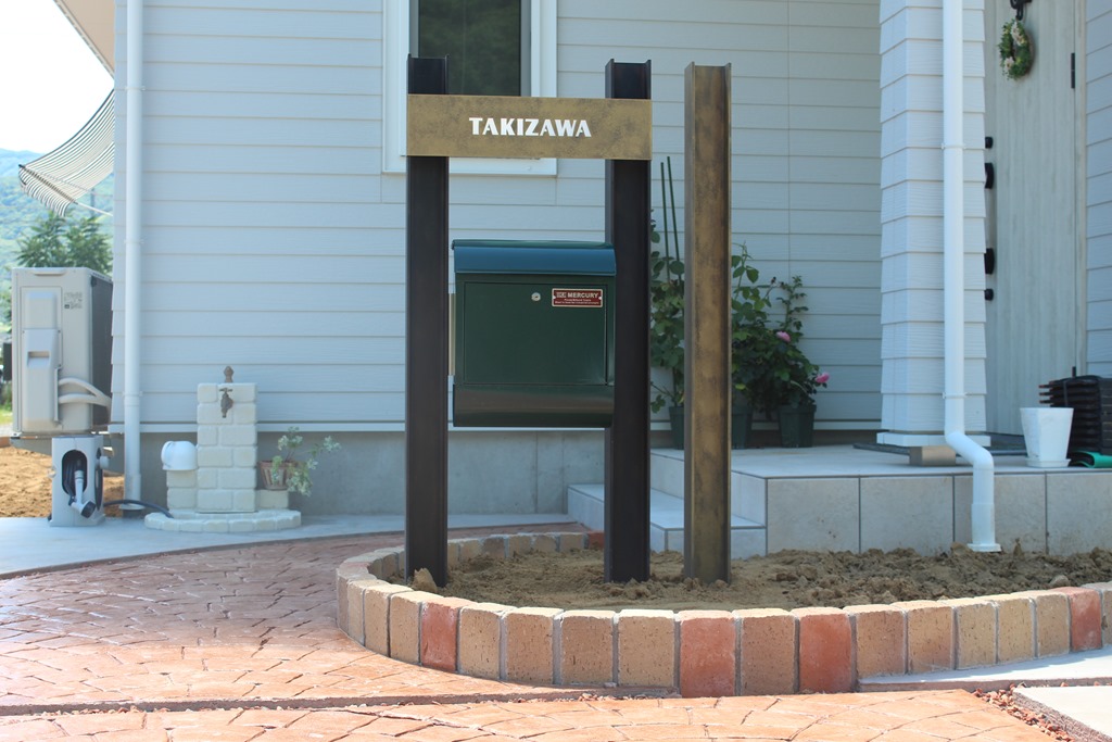 完成させたサインを施工した現場です、オンリーワンのサインを取り付けて素敵な外構に仕上がりました。