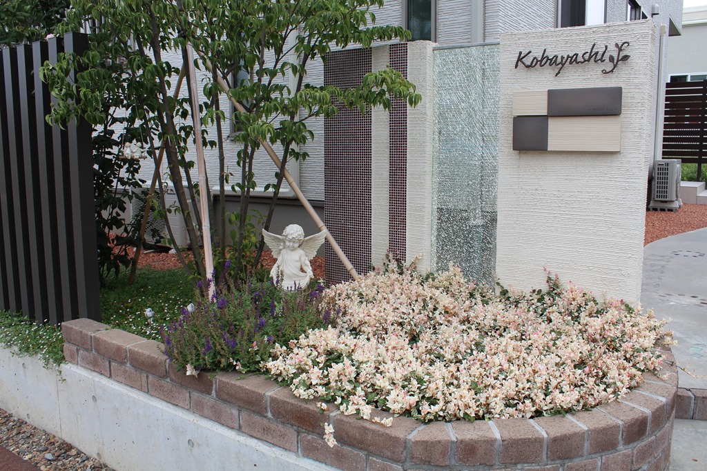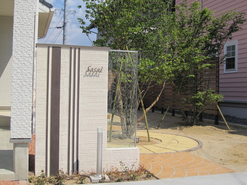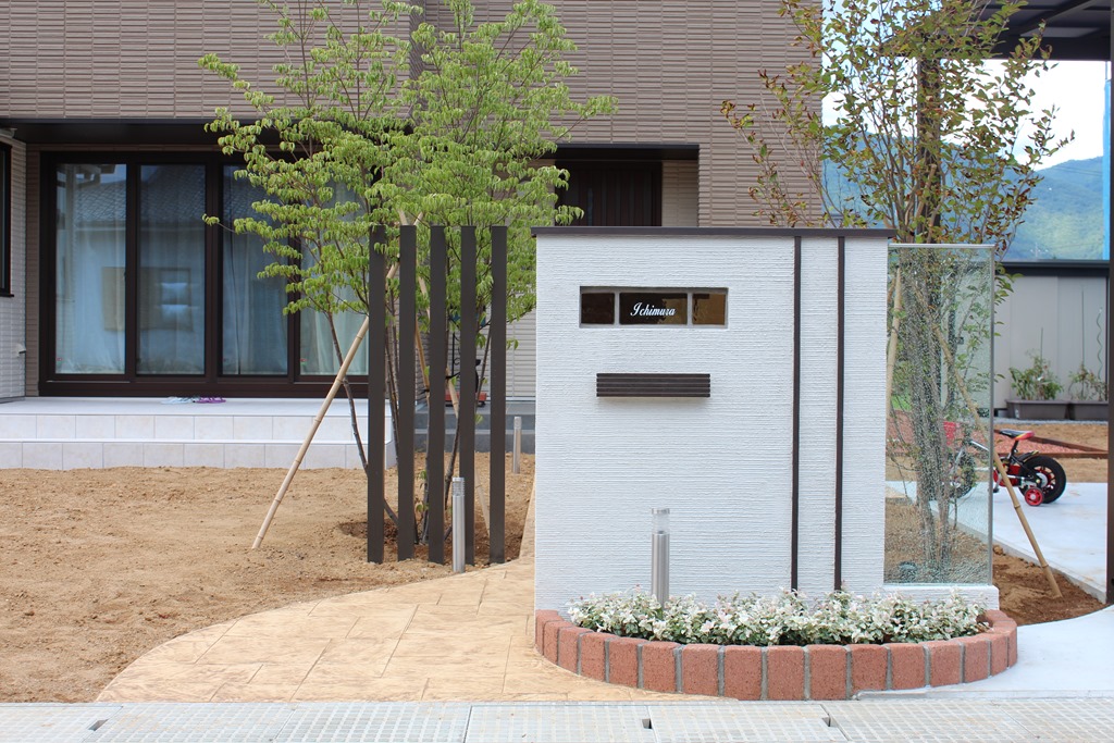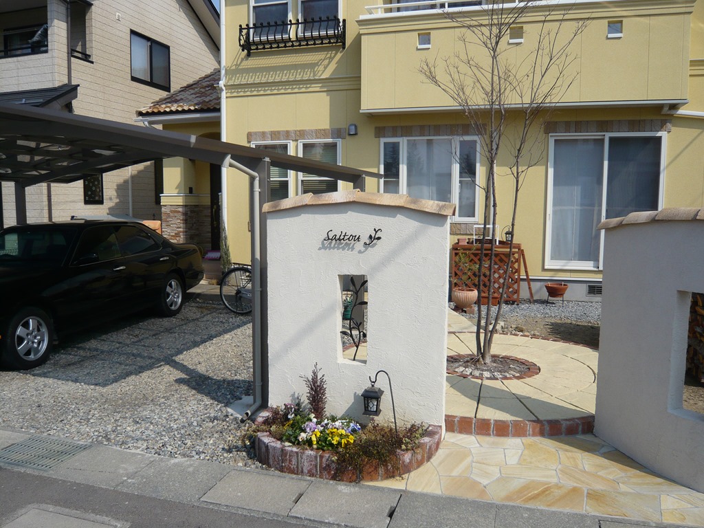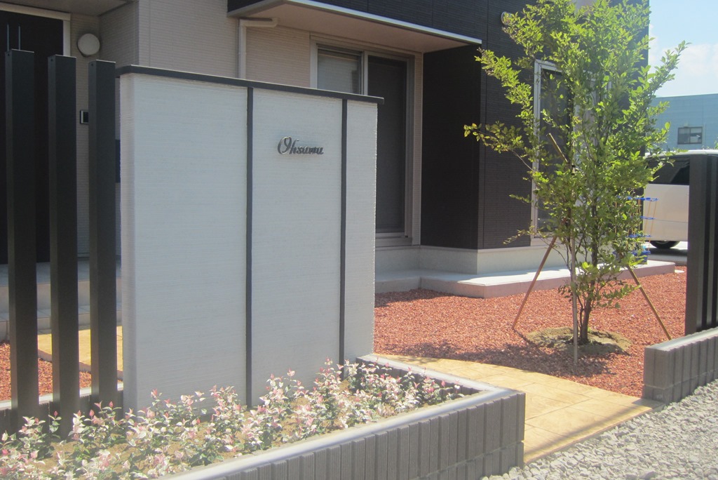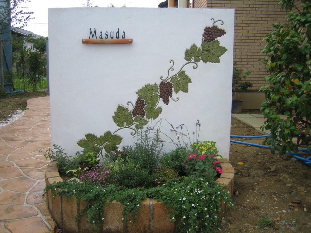 完成させたサインを施工した現場です、オンリーワンのサインを取り付けて素敵な外構に仕上がりました。