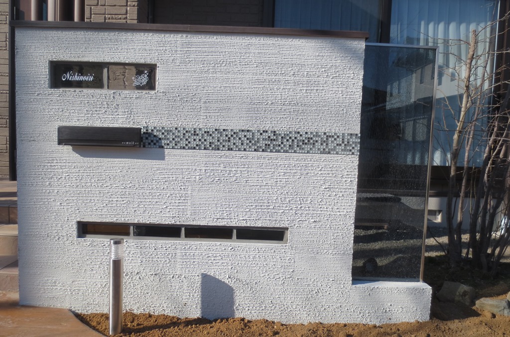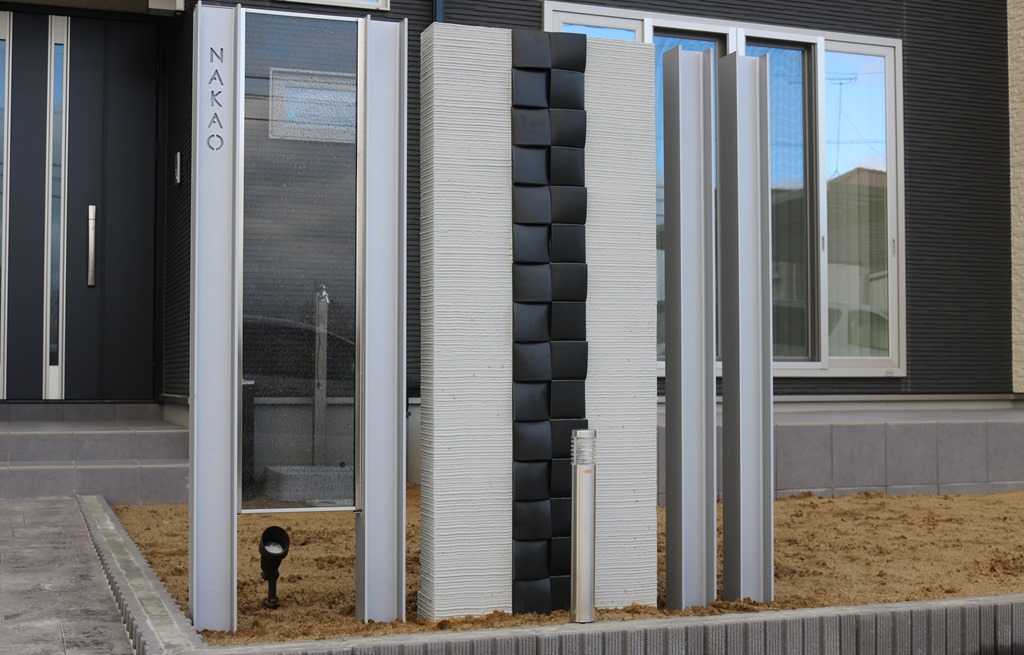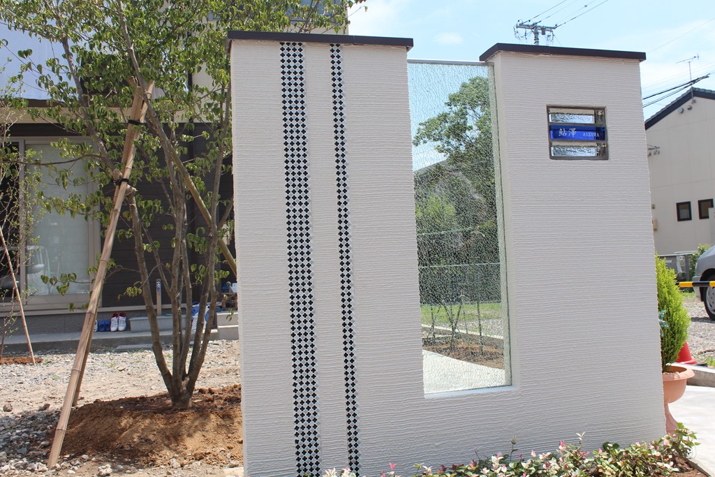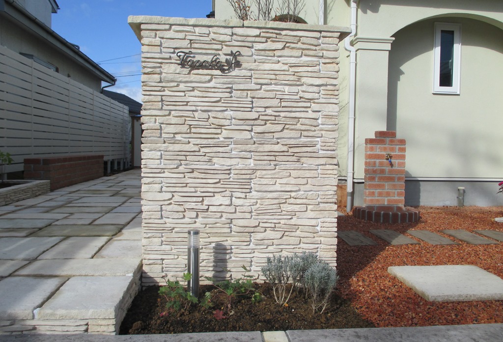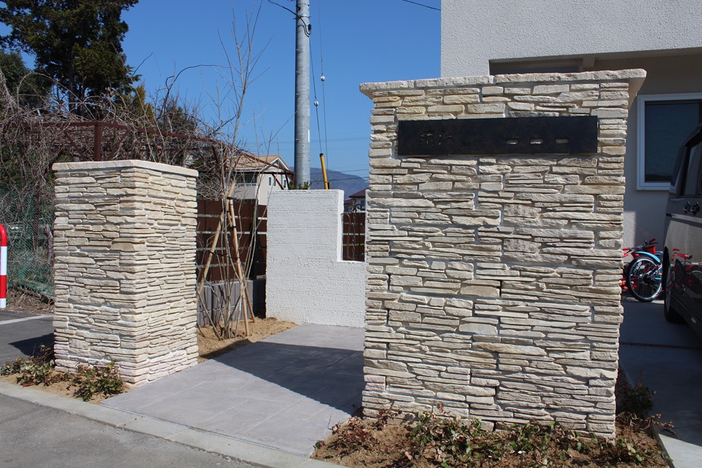 当社だけの特殊発泡で作られたエクステリアの門柱です。耐久性に優れている事と、デザインもいろいろ工夫をする事が出来る上に施工が早いのも特徴のひとつです。