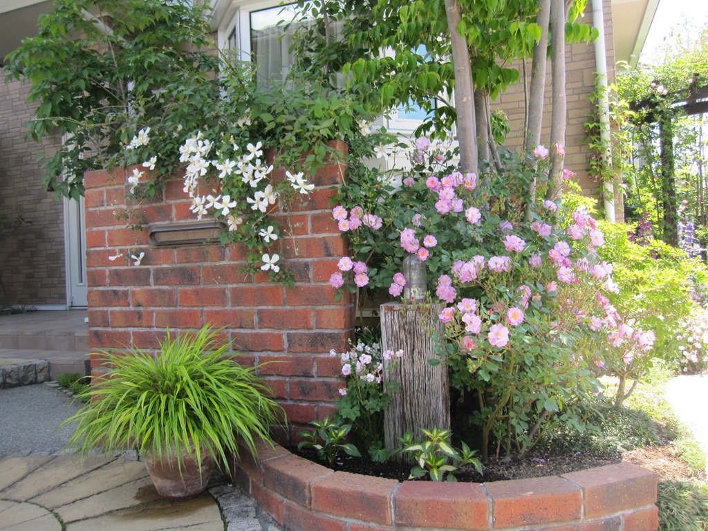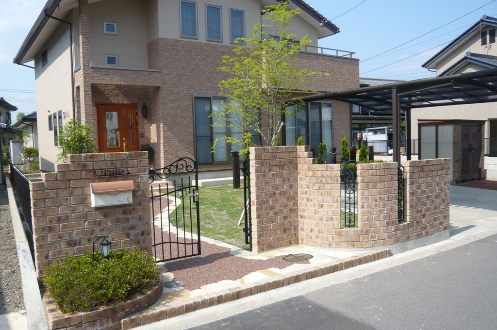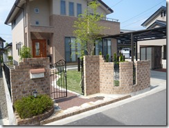 レンガ積みの門柱もいいですね。時が経っても、飽きの少ない煉瓦積みのエクステリアの門柱です。