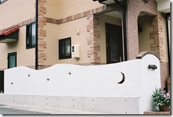 特殊工法(スコレット)はディズニーランドと同じ工法で作られたエクステリア門柱、ボーダーアートの型押しをデザインした特別な工法で仕上げた門柱です
