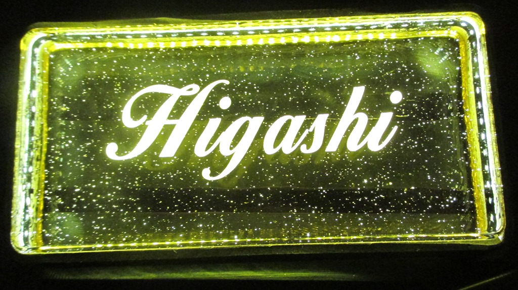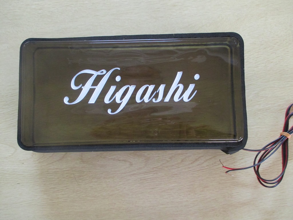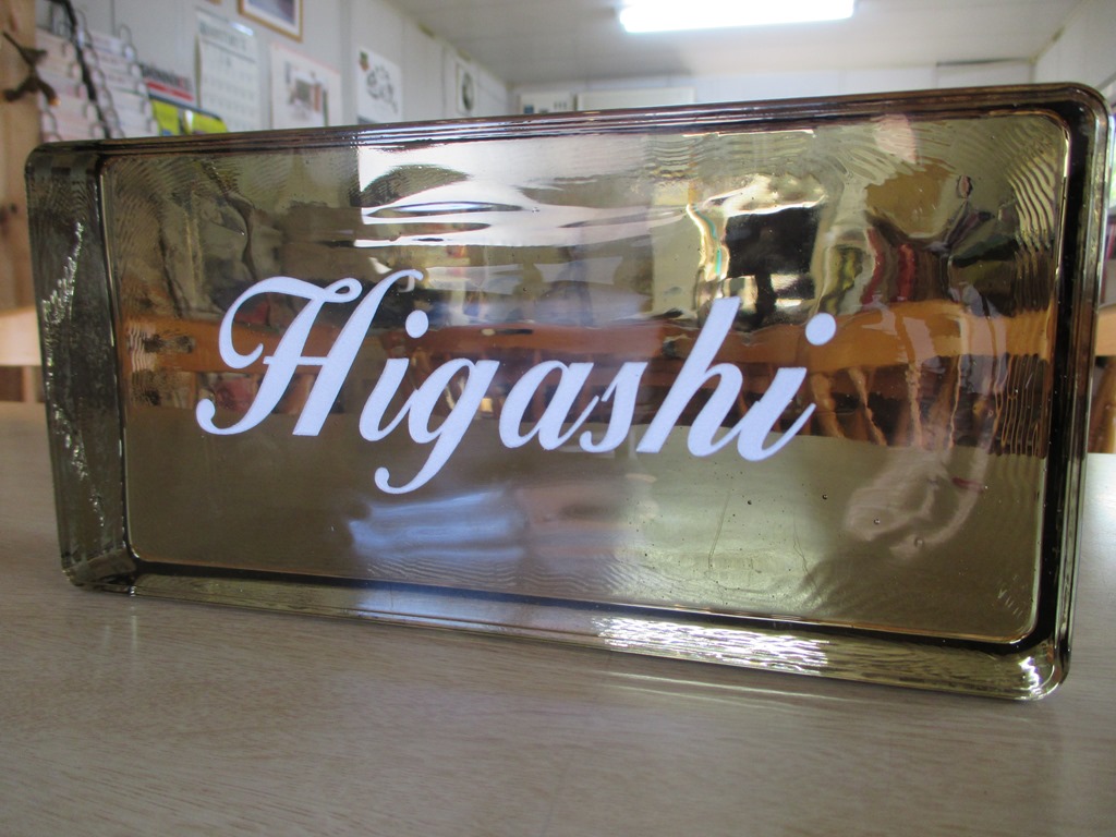 LED照明は付きませんがベネチアンガラスを何段か積み上げ名前を彫り込んだサインです。段数は好きな数を積み上げられますが三段がバランスが取れていて人気があります。シンプルですがとても素敵で落ち着いた感じの仕上がりとなります。 ベネチアンカラスのカラーは4色あるので好きなカラーの組み合わせでの施工もできます。