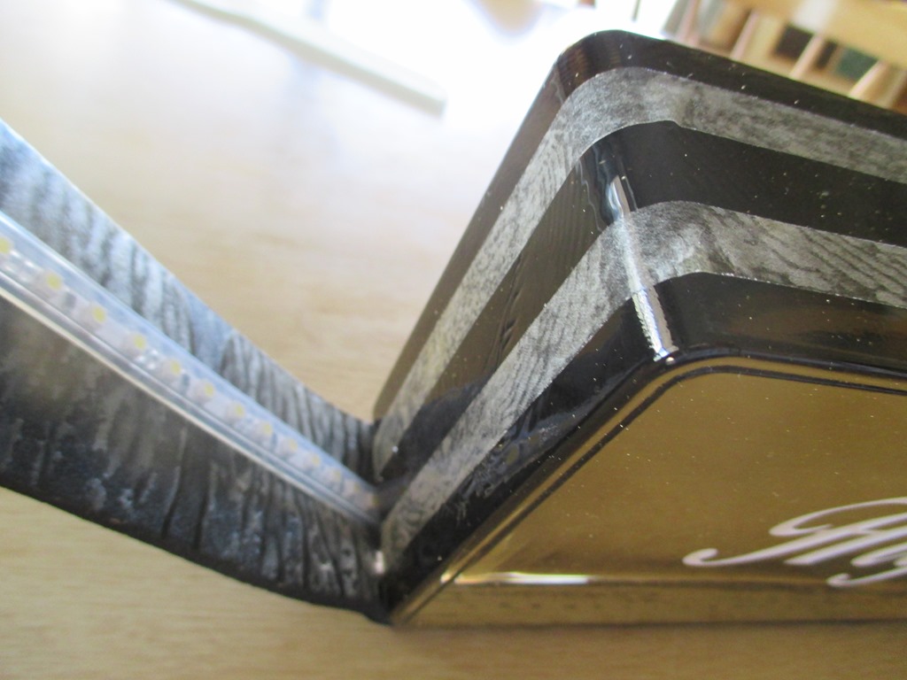 ガラス保護材にLEDテープを貼った状態で、ベネチアンガラスブロックに巻きつけていきます。これでベネチアンガラスサインLED照明付の完成です。