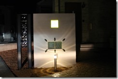 門柱の裏側から見ても、ジュエルグラスに反射する灯りと、ベネチアンガラスを取り付けた枠の部分が輝いて見えています。 長野市のエクステリア照明。